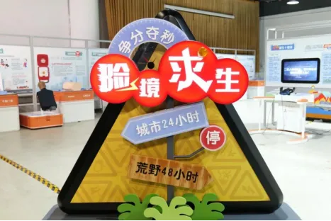 (3)中国科技馆“险境求生”主题临展。展览以“争分夺秒,险境求生”为主题,分“应急预备营”、“城市24小时”、“荒野48小时”、“警钟长鸣”四大主题板块共15件展品。