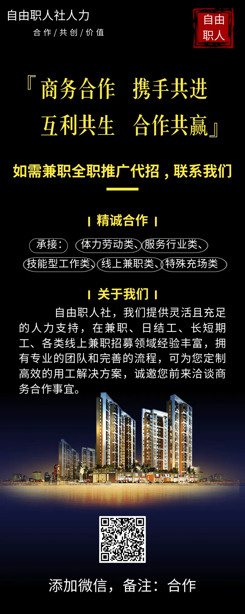 工作要求:男生,19-45,身高172+,身体健康,服从安排。黑色短发。
