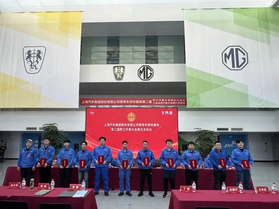 郑州基地党委委员、整车二厂总监孙建平为大乘用车合理化建议获奖员工颁奖。