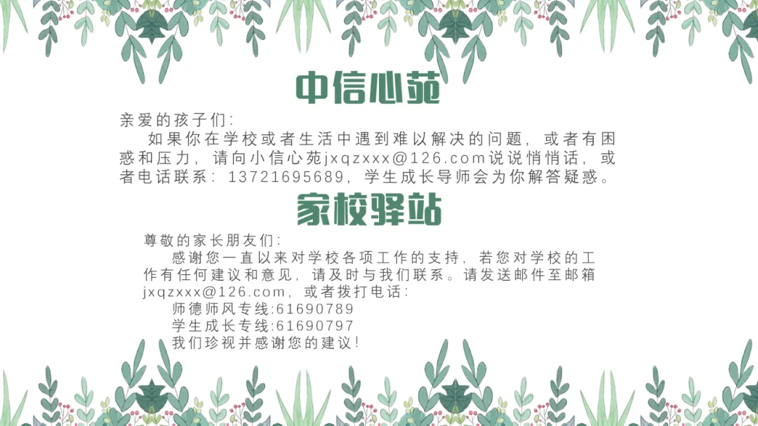 1. 家长要与孩子多沟通交流,每天“倾听一刻钟”,了解他们的内心世界,给予关心和支持,帮助解决困惑和问题。