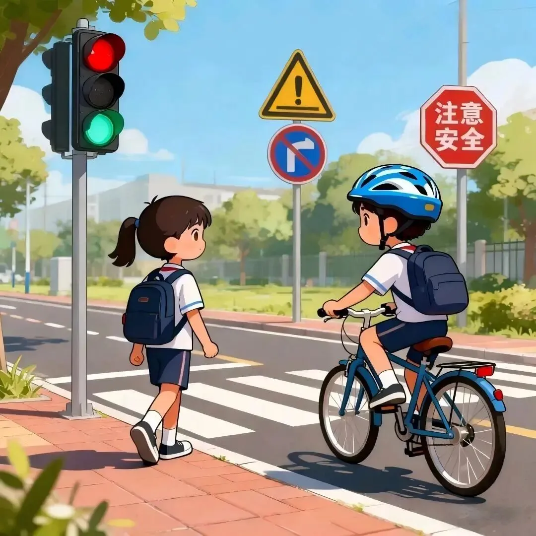 1.教育孩子外出时要严格遵守交通法规,不闯红灯,不翻越隔离栏,过马路要走斑马线;行走时要专心,注意周围情况,不低头看手机或听音乐,不在马路边或者车辆盲区内玩耍打闹等。