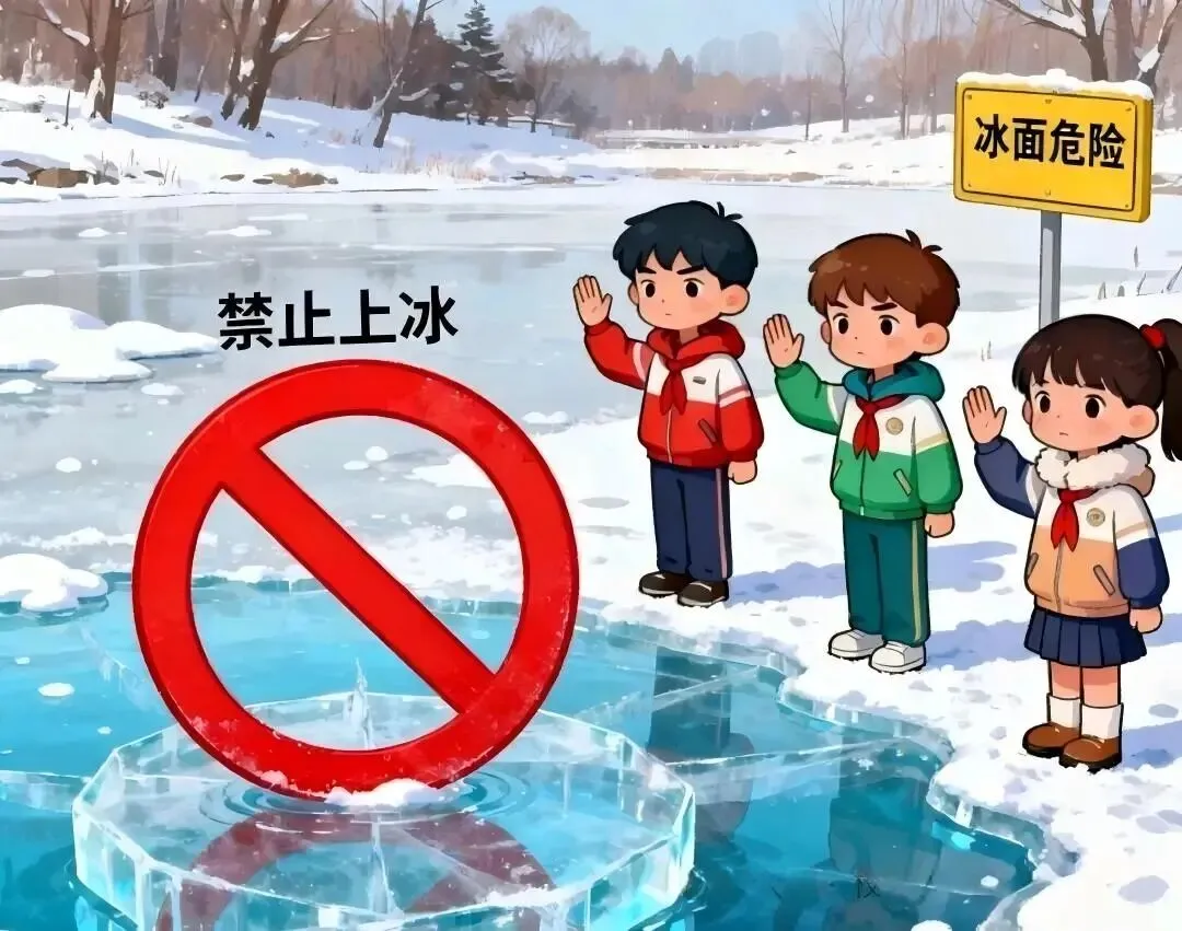 1.冬季部分水域虽结冰,但冰层厚薄不均,暗藏坍塌风险,严禁前往河流、水库、池塘等无安全保障的水域滑冰、玩耍。