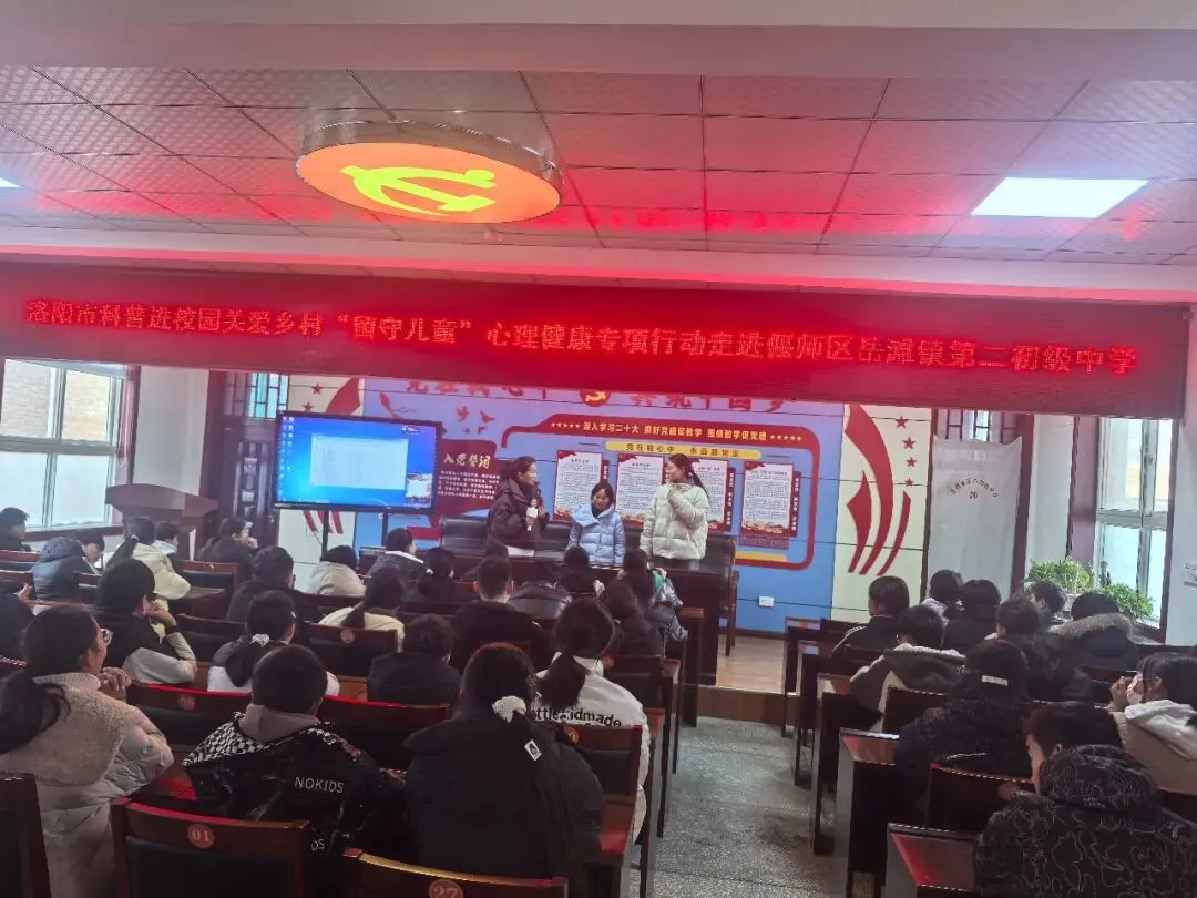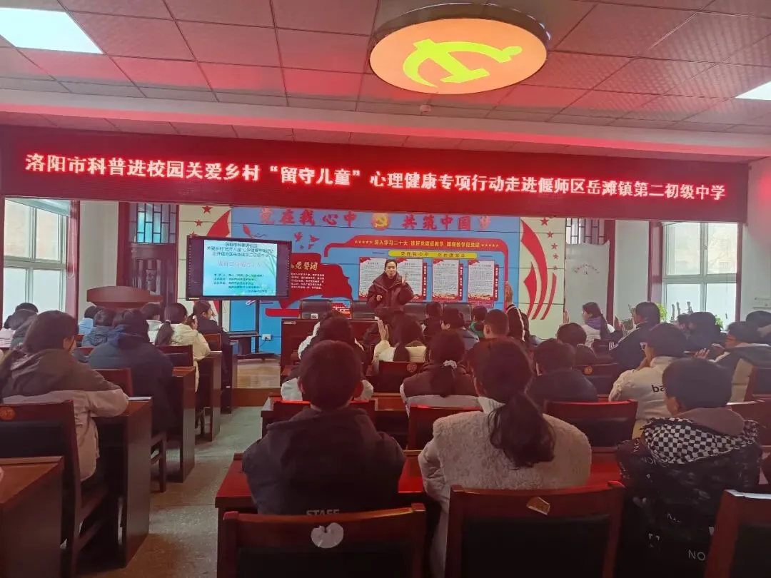 12月30日上午,由洛阳市科协主办的“洛阳市科普进校园关爱乡村‘留守儿童’心理健康专项行动”在偃师区岳滩镇第二初级中学顺利开展。活动邀请国家二级心理咨询师静心老师,以趣味游戏为载体,围绕情绪认知与管理主线,通过趣味互动、情景演练、户外游戏等多样形式,为57名青少年学生带来了一场别开生面的心理健康教育,助力留守儿童健康成长。