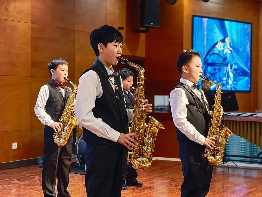 萨克斯声部兼具深情与活力。师生同台的《莫斯科的郊外+如愿》,融合经典韵味与现代温情,传递对美好生活的向往;许鑫磊老师的独奏《show me the way》,以娴熟技巧和饱满情感征服全场,尽显专业风采,台下掌声经久不息、此起彼伏。