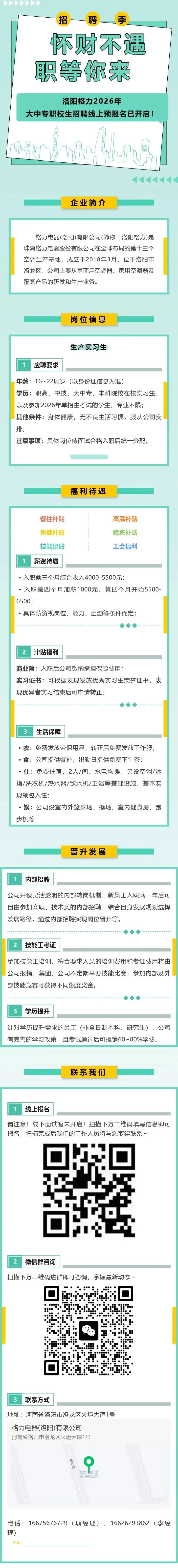 >洛阳格力2026年大中专职校生招聘线上预报名
