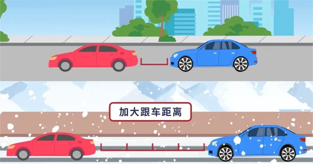 5.雨雾、冰雪等恶劣天气出行,需降低车速、保持车距、谨慎驾驶;驾车做到“四缓”——起步缓、转弯缓、制动缓、心态缓。
