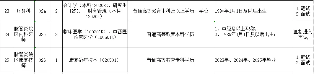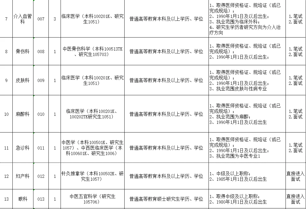(1)报考医学类硕士研究生岗位及要求中级及以上职称本科岗位的考生,直接进入面试。(详见《岗位表》附件1)。