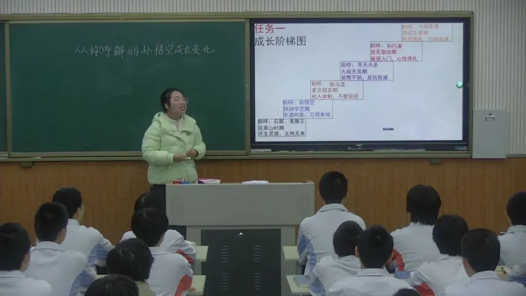 推进梳理,观照成长: 徐杨老师执教的《从称呼解码孙悟空的成长变化》推进课,视角独特。她引导学生梳理孙悟空从“石猴”到“斗战胜佛”不同时期的称号变化,以此为线索,深入探究其性格、能力与心境的演变历程。这堂课将情节梳理与人物成长分析有机结合,帮助学生构建了对主人公发展脉络的整体认知。
