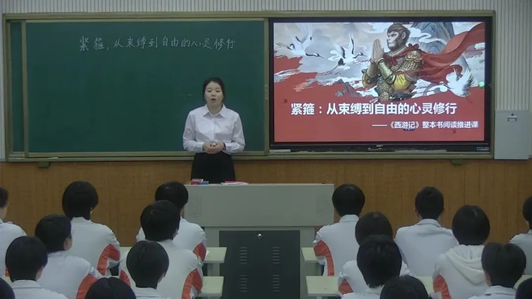精读深研,思辨升华:史梦雨老师为大家带来了《紧箍:从束缚到自由的心灵修行》推进课。她聚焦“紧箍”这一核心意象,引导学生精读相关章回,深入探讨孙悟空头上紧箍“从有到无”的过程所蕴含的深刻哲理。课堂围绕“束缚与自由”、“规训与成长”、“责任与超越”等辩证关系展开思辨,将阅读提升至文化理解与人生感悟的高度。