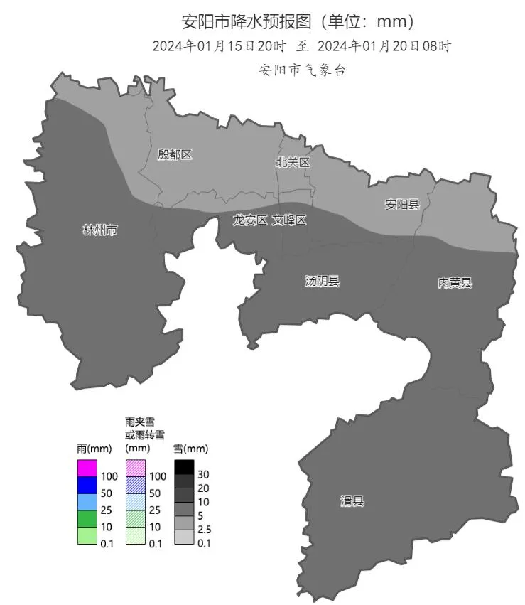 根据最新气象资料分析,1月15日至19日我市将出现持续阴雨雪天气。降水主要出现在1月15日夜里至16日、1月18日夜里至19日,总降水量5毫米左右。受静稳天气和传输影响,1月12日夜里至14日白天,我市有雾霾。受较强冷空气影响,气温较前期下降4℃至6℃,1月15日早晨、20日早晨最低气温将降至-6℃至-8℃。