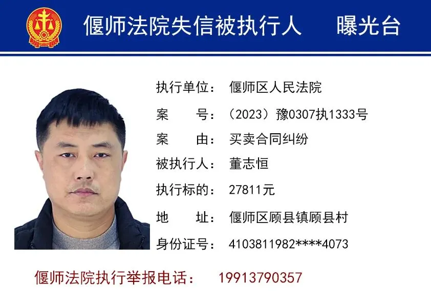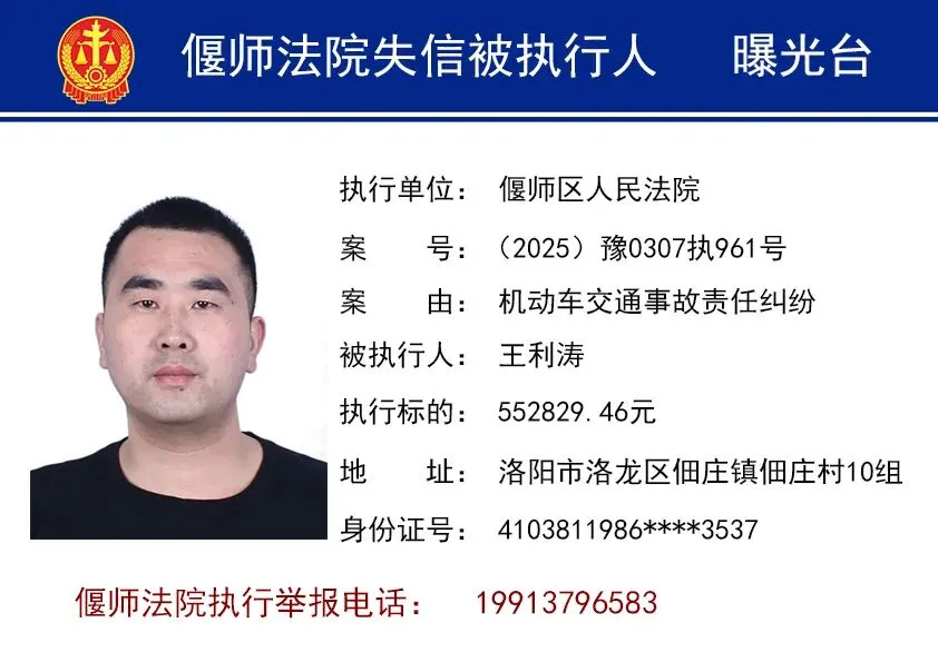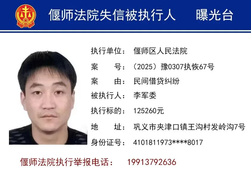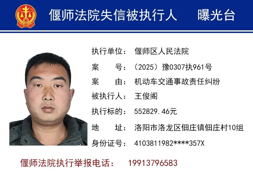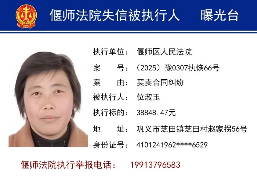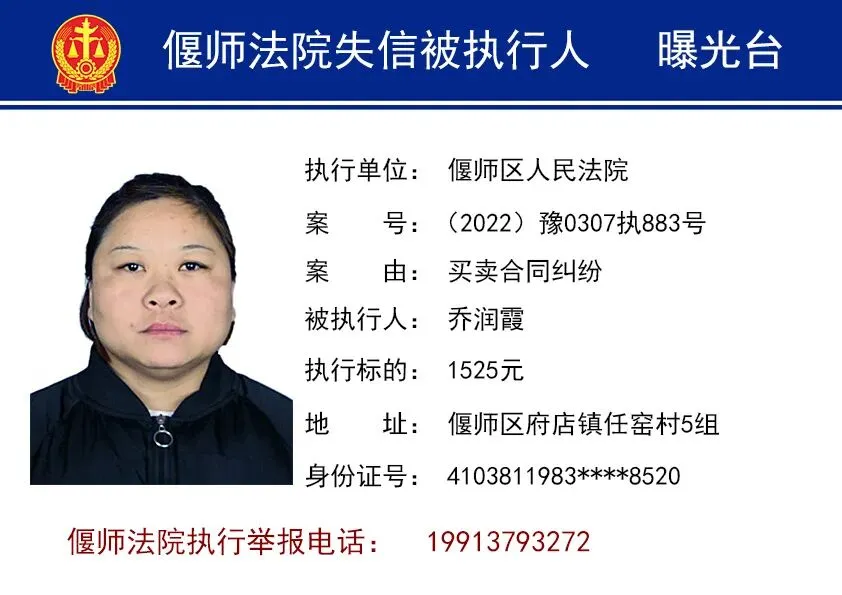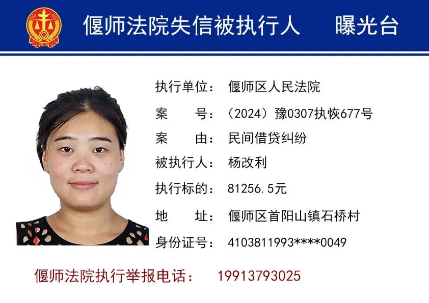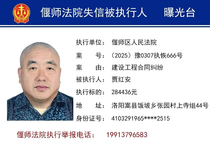 为进一步打击失信行为,维护胜诉当事人合法权益,洛阳市偃师区人民法院依法将失信被执行人名单予以曝光,以示惩戒。同时,偃师法院提醒您,在与他人发生经济往来前,请务必查询对方是否为人民法院失信被执行人,以免遭受不必要的财产损失。欢迎广大群众向法院举报失信被执行人的财产线索。