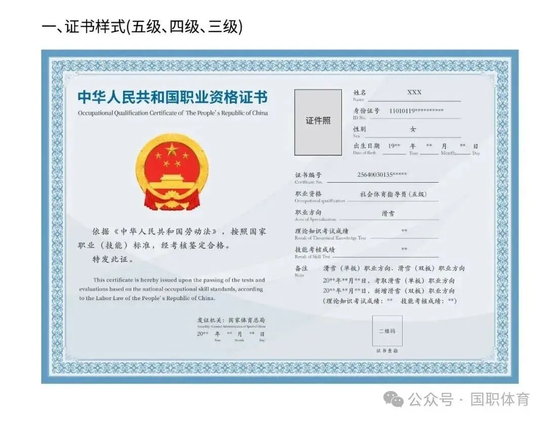 发证单位:中华人民共和国人力资源与社会保障部、国家体育总局职业技能鉴定指导中心