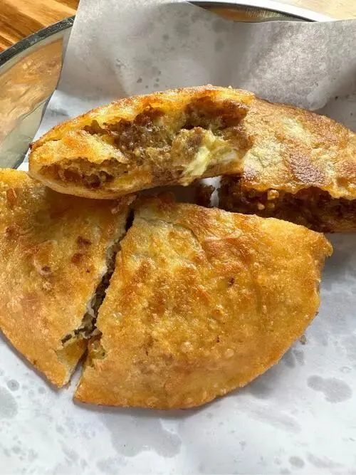 肉盒子看着不起眼,咬开是肉香混着韭菜,面皮焦香,边角还带点锅巴的脆。饭馆里不见排队,吃完坐一会儿,老板也不催你走。