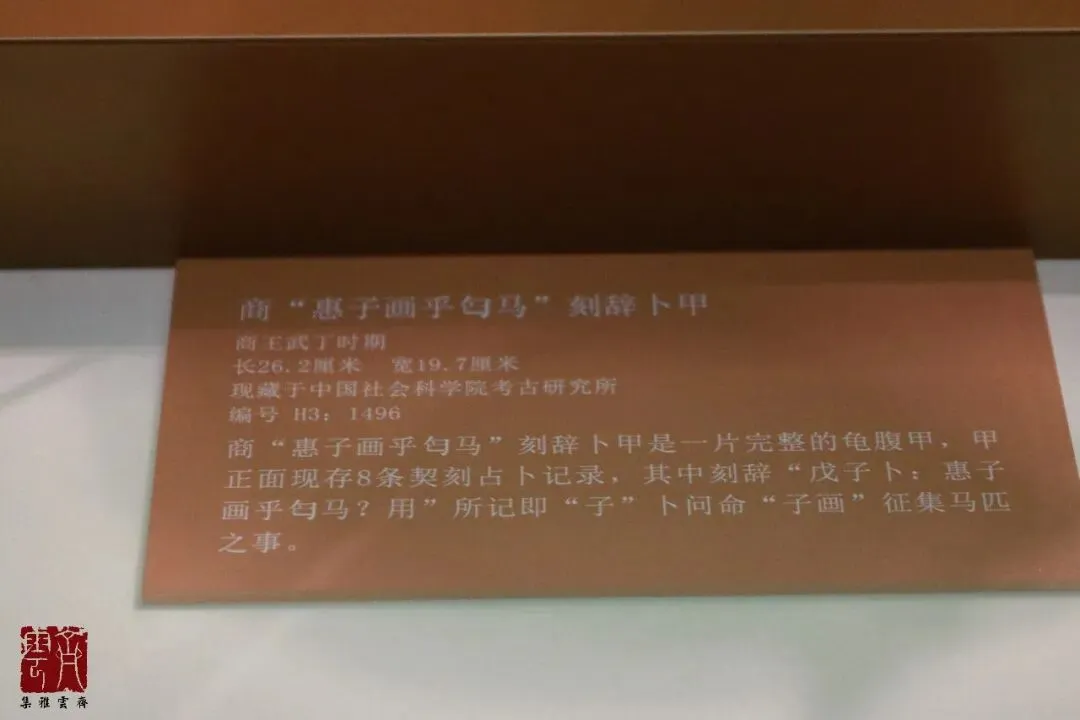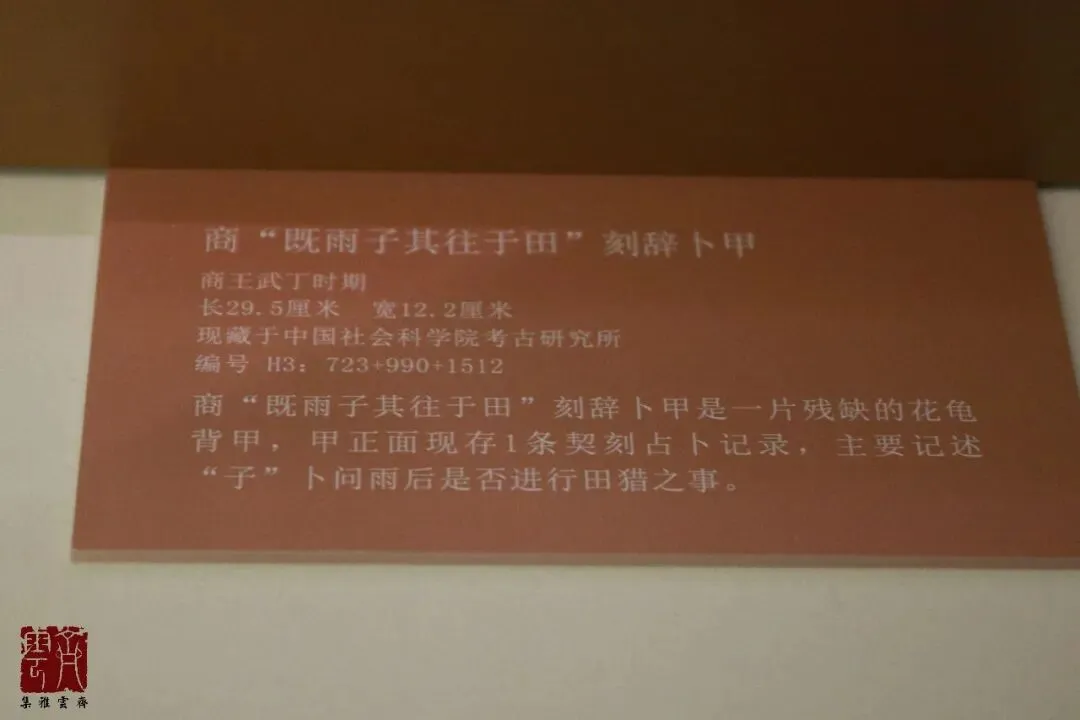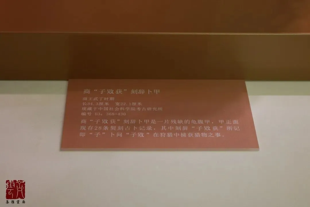 本篇开始分享“子何人哉~殷墟花园庄东地甲骨特展”的相关内容。已分享部分详见:第四单元名为“子之起居”。这一单元内容很多,分为祭祀、文化、田猎、农业、军事等几个板块,这其中陈列的龟甲都比较完整,每一块分别拍摄了展板、整体、带字局部等多张图片,因甲骨文的专业性与复杂性,以及部分字难以拼写出,因此后续不再逐个介绍,大家看图就好。上一篇分享了“子之起居”中的祭祀部分,本篇分享其中的“文化”部分。这一部分非常精彩,尤其是数十块甲骨排列成波浪形展示,很有视觉冲击力。文博交流、商务合作请添加本人微信,参与更多线下探馆、访古、交流活动,全网同名“齐云雅集”,具体事宜可以扫上方二维码加我微信咨询,也欢迎推荐给需要的朋友,谢谢关注和转发。