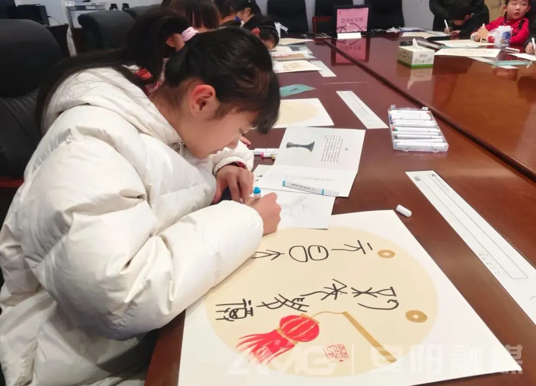 孩子们有的求助家长,有的借助手机查资料,并在社教老师指导下,一笔一画书写着“元旦大吉”“新年受福”等吉语。不一会,一幅幅满是创意,又饱含新年元素的作品完成了。不少孩子对原有甲骨文进行了再加工、再创造,让作品更具特色。
