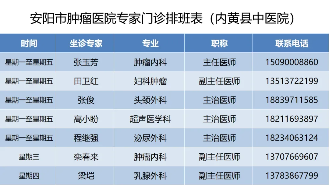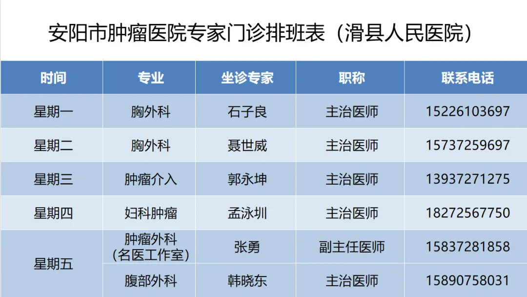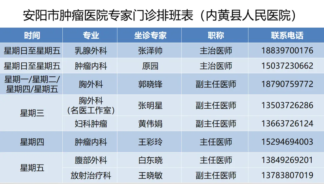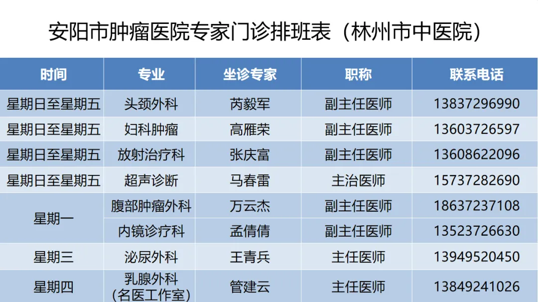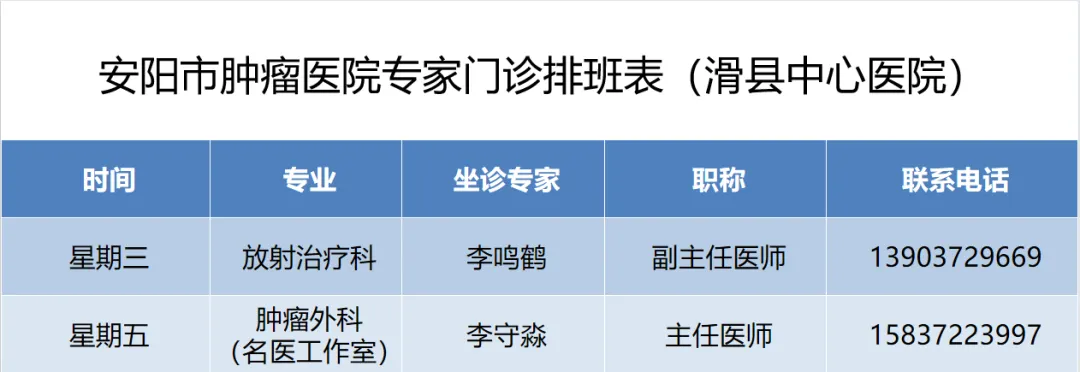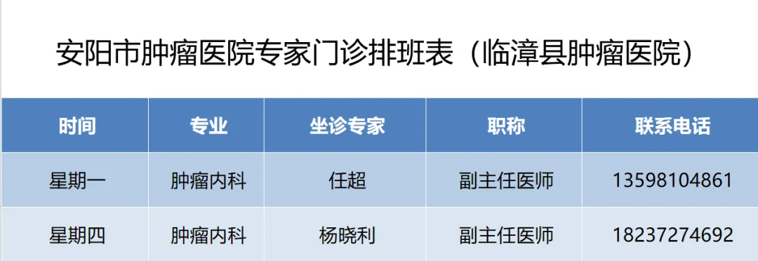>安阳市肿瘤防治专科医联体丨安阳市肿瘤医院在医联体成员单位1月4日—1月9日专家门诊排班表