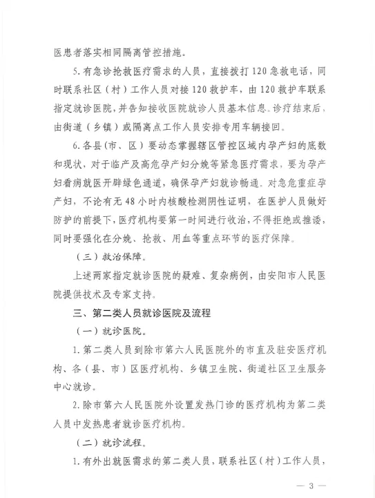 2.其余县(市、区)。指定安阳市第六人民医院为第一类人员就诊医疗机构,凡第一类人员门诊、住院、发热患者可按照就诊流程至市第六人民医院就诊。