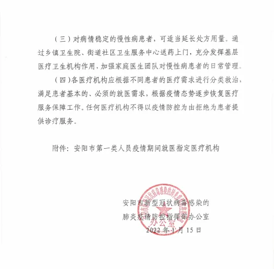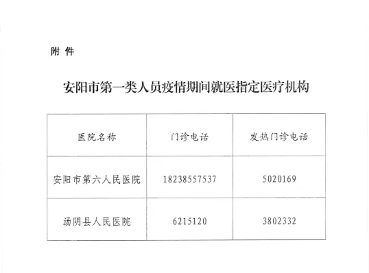 安阳市第一类人员疫情期间就医指定医疗机构