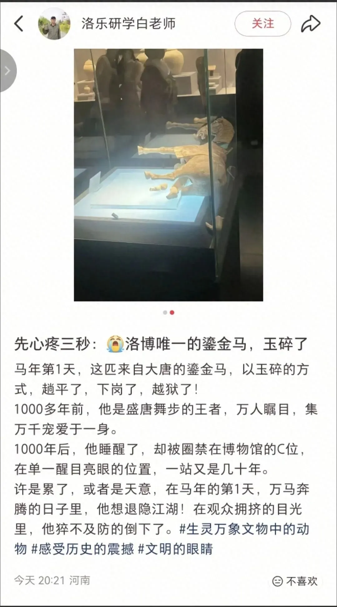 值得关注的是,此次陶马受损事件恰逢农历马年临近,在民间引发了不少感慨。但抛开象征意义,事件本身更应促使全国文博系统进行反思。近年来,多地博物馆曾发生类似文物受损情况,暴露出部分机构在风险管理与应急预案方面仍存在提升空间。