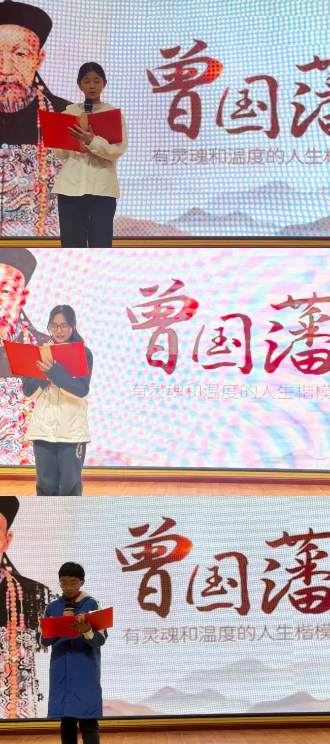 七年级六班的同学们以情景剧的形式生动演绎了“曾国藩勤字法”,将古人勤学励志的精神融入鲜活的表演之中,赢得了全场阵阵掌声。班级代表随后上台分享学习心得,从经典中汲取成长力量,让“勤能补拙”的理念深入人心。