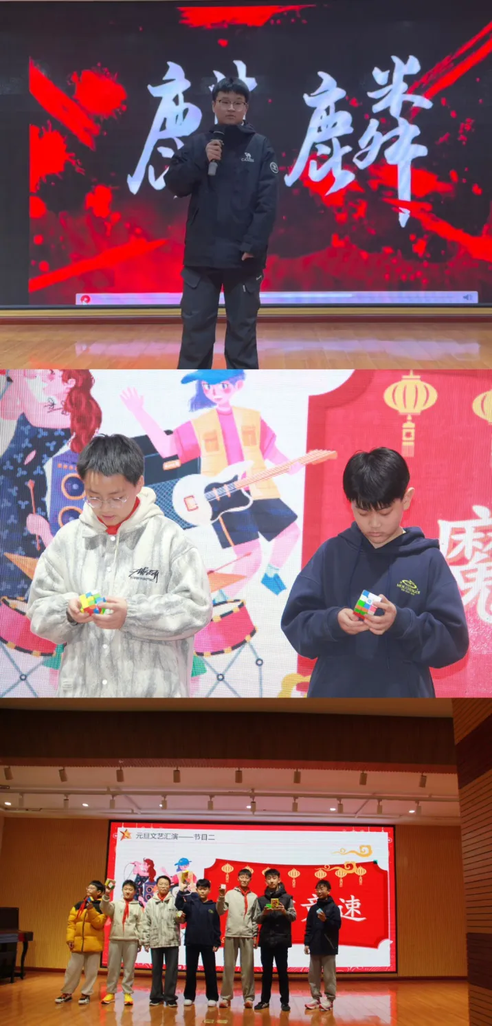 旧岁已展千重锦,新年再进百尺竿。为传承中华优秀家教文化,丰富学生课余生活,营造喜庆祥和的元旦氛围,郑州第七初级中学东校区七年级以“传承经典,启迪未来——‘曾国藩教子十法’”为主题,举办了一场别开生面的元旦联欢会。本次活动分场地开展,七年级一班、二班于室内欢聚,三班、四班、五班、六班则齐聚报告厅,共赴这场文化与青春交织的盛宴。
