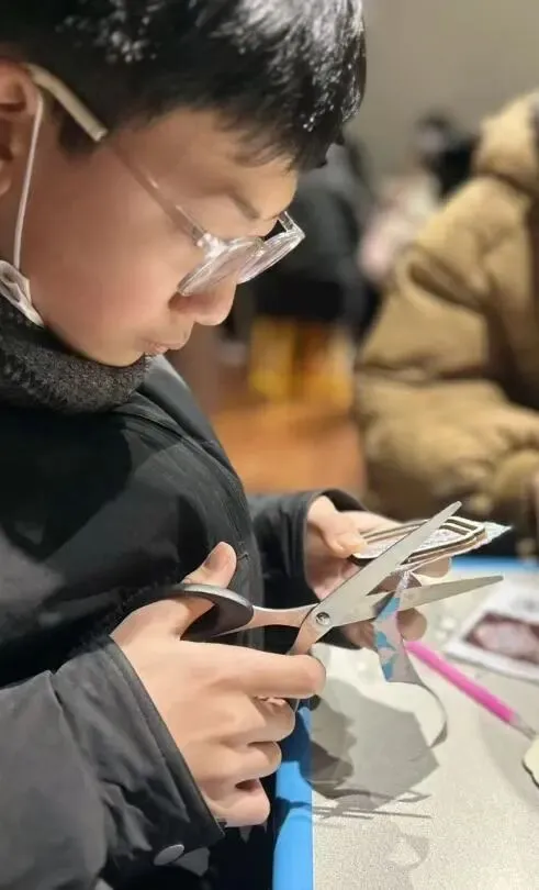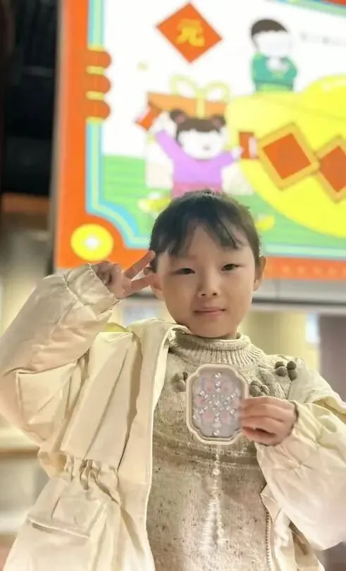 活动伊始,专业老师用生动有趣的语言,向孩子们介绍了元旦节日的文化和习俗。然后,在老师的悉心指导下,孩子们迫不及待地开始了自己的创作。他们小心翼翼地裁剪着色彩绚丽的宋锦缎,发挥着天马行空的想象力,将一块块精美的锦缎拼贴成一个个独一无二的冰箱贴。当一个个小巧玲珑、色彩斑斓的宋锦冰箱贴在孩子们手中诞生时,喜悦之情溢于言表。这些融合了传统韵味与现代审美的手工作品,不仅是孩子们创意的结晶,更是一份独特的新年礼物,承载着满满的福气与美好的祝愿。