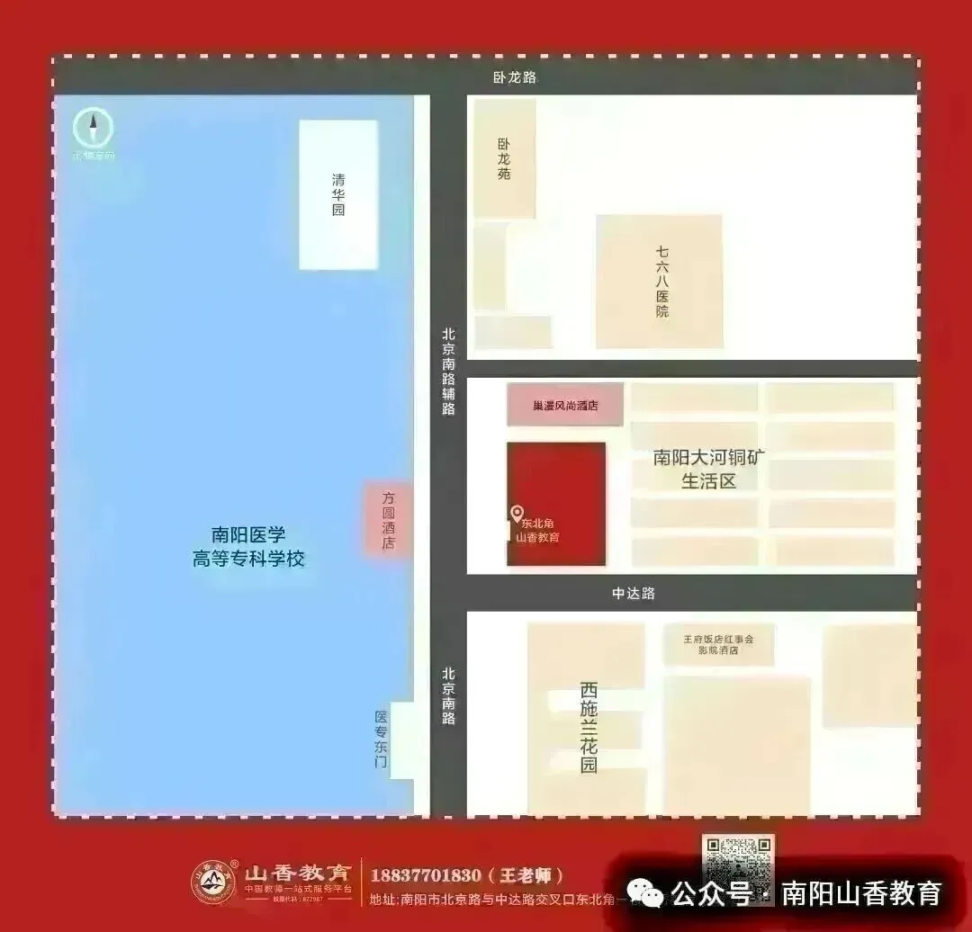 ●市区校址:卧龙区躬耕路与北京路交叉口东北角山香教育(北京路校区)
