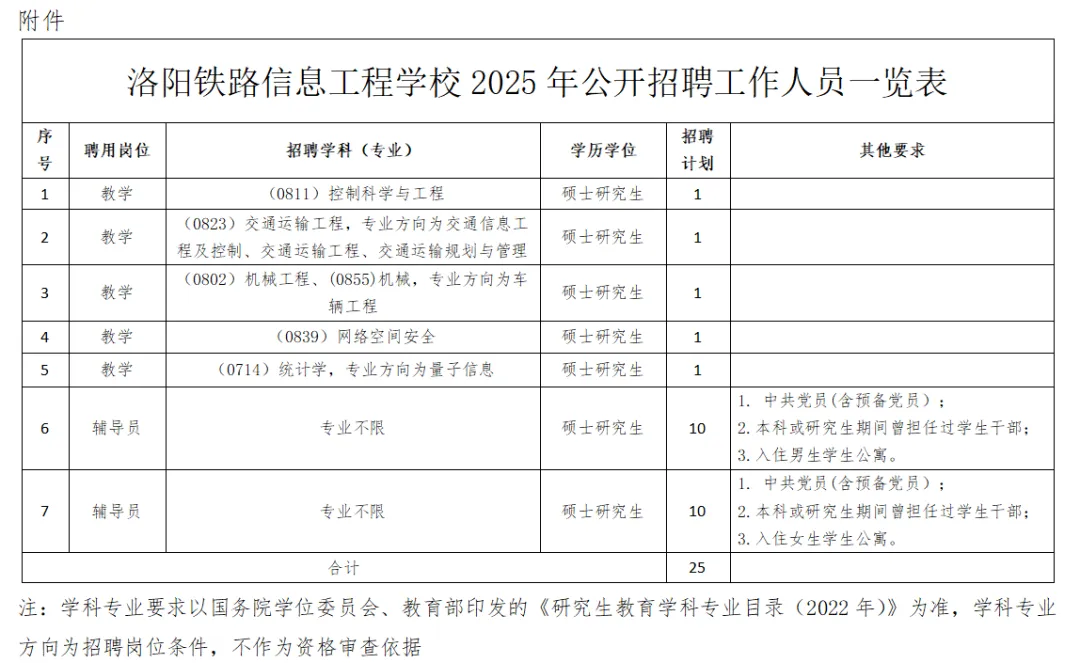 10.岗位所需专业和其他条件,详见附件《洛阳铁路信息工程学校2025年公开招聘工作人员一览表》;
