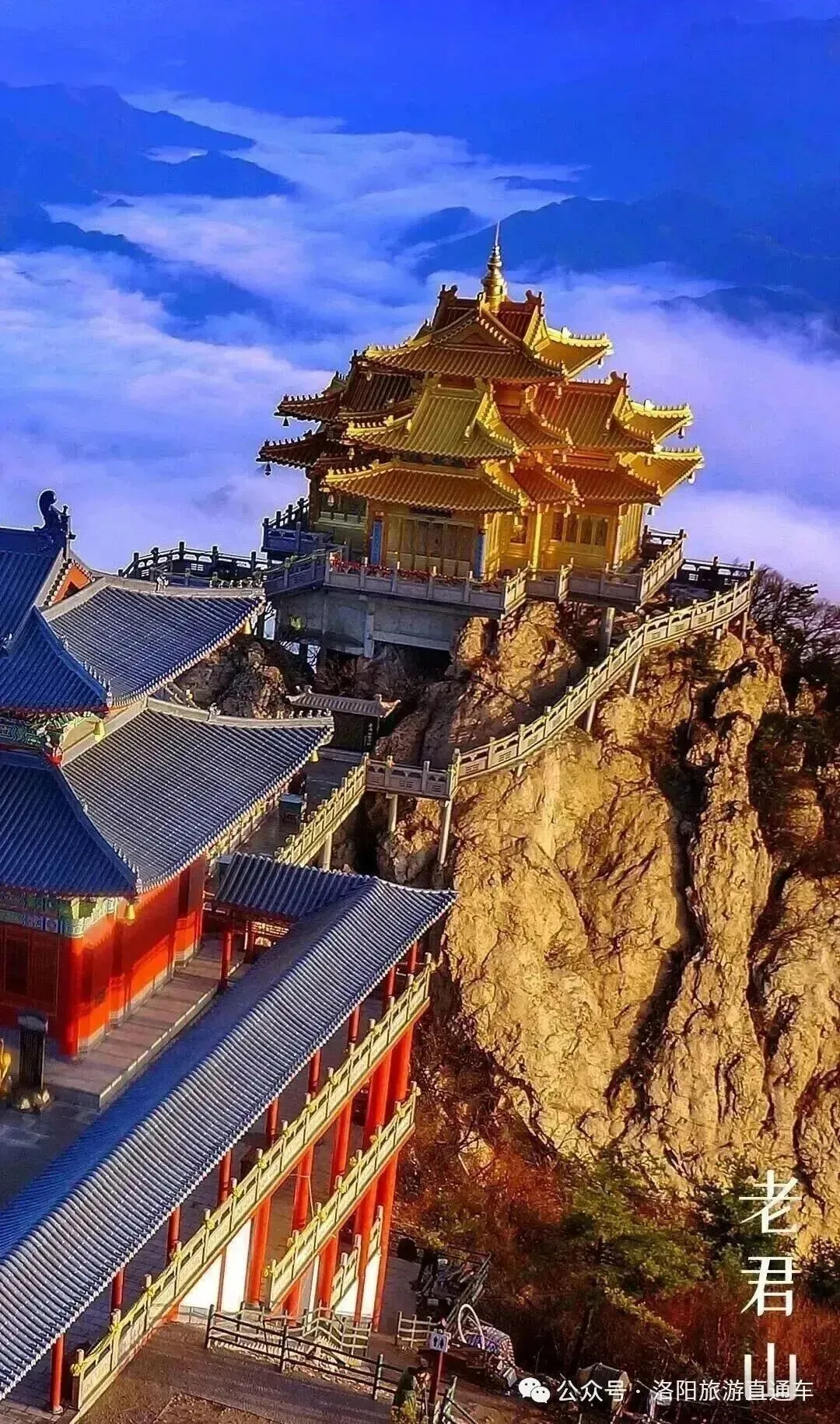 老君山有两千多年道教文化历史。传说老子传《道德经》后,告别函谷关的关令尹喜,骑着青牛而去,《史记》记载“莫知其所终”。另有记载称老子归隐于洛阳景室山,即老君山,景室山因老子在此归隐修炼而得名。北魏时在山中建庙纪念老子。唐贞观年间受到皇封,修建“铁顶老君庙”,唐太宗赐名为“老君山”,沿袭至今。明万历十九年(1591)颁赐老君山道经诏谕,封为“天下名山”。