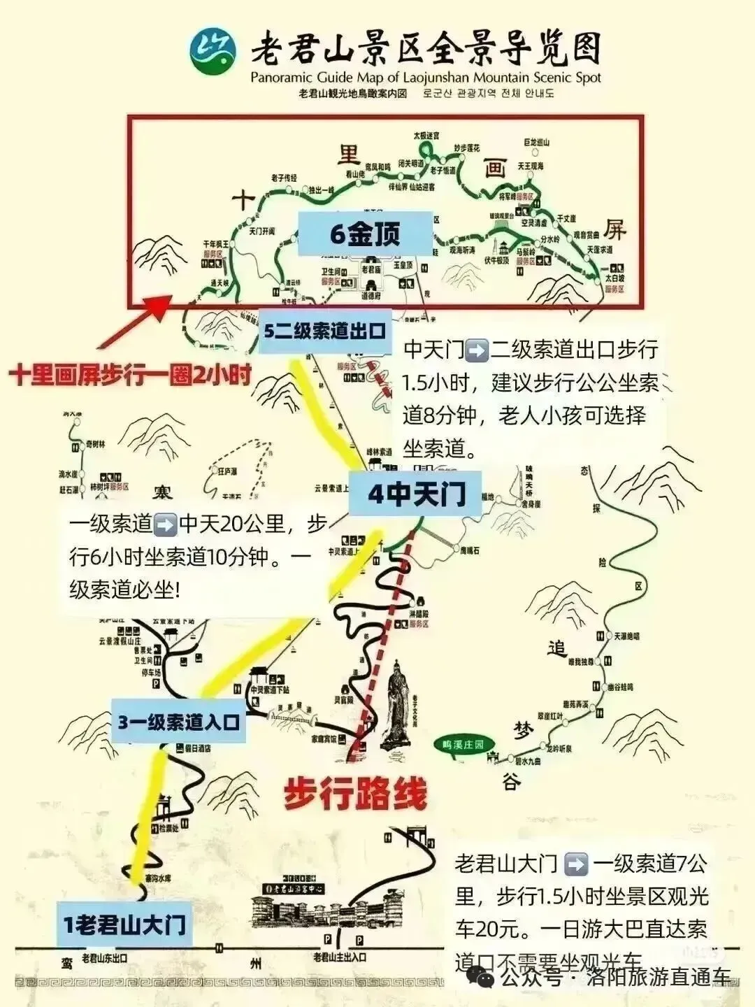 然后乘车赴“伏牛第一峰 老子归隐地”——老君山 (车程约2.5小时),全程高速,直达索道入口,