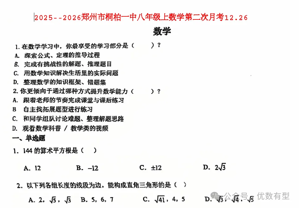 夸克「2025年秋河北省内外月考期中期末试卷」