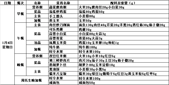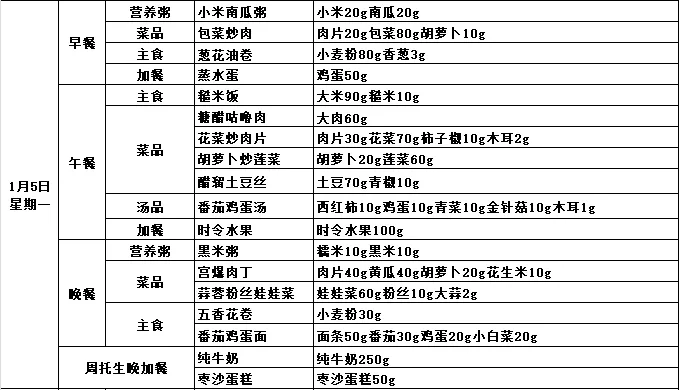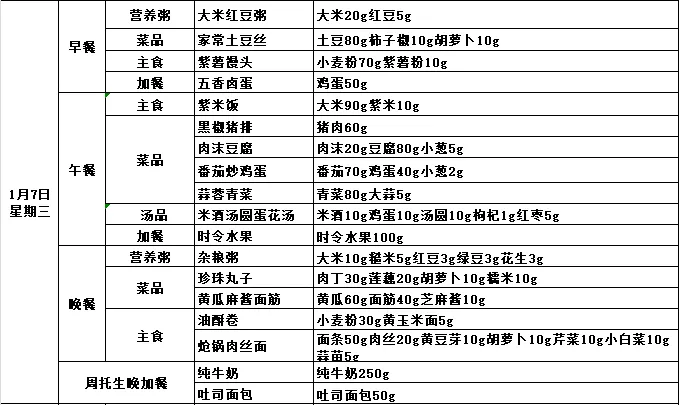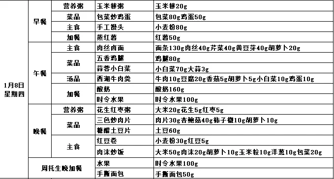 第十九周带量营养食谱