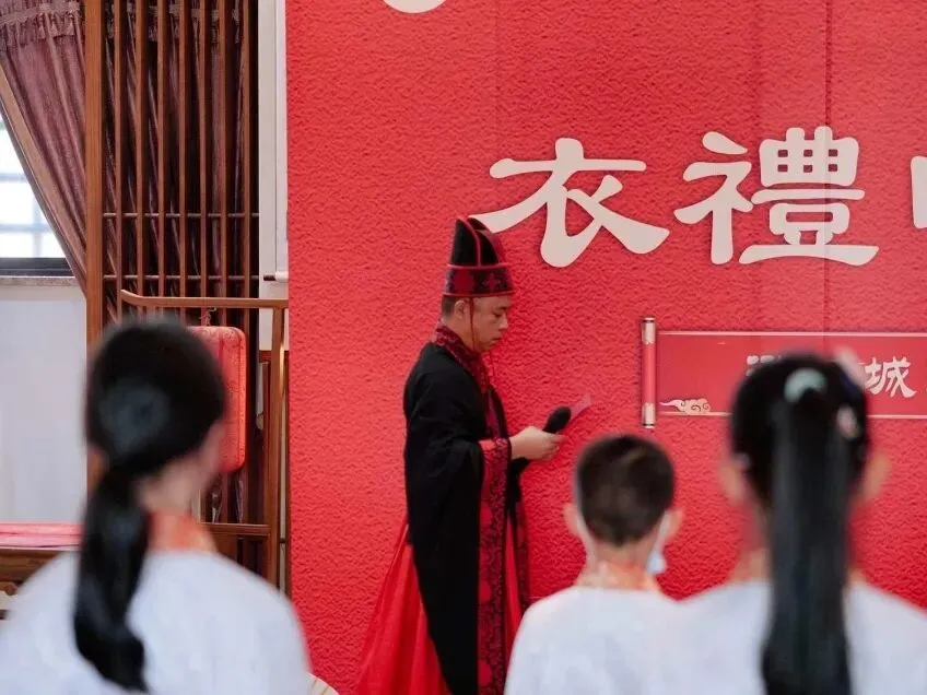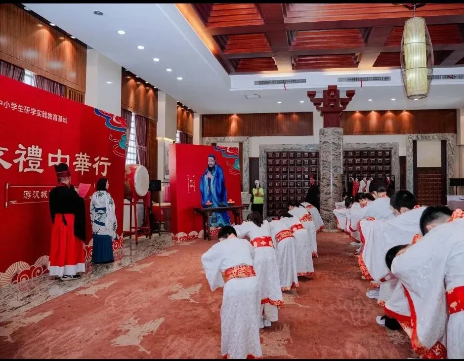 在丝绸之路起点大风阁,身着汉元素服饰学习揖礼、万福礼,化身“汉代学子”开启文化之旅。