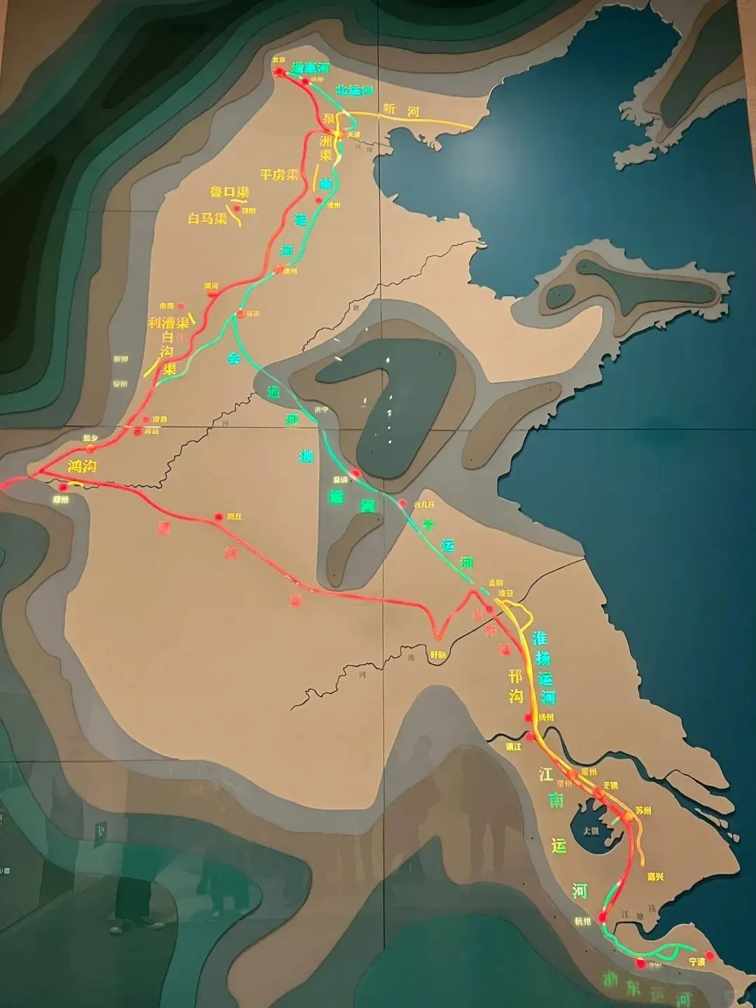 吴邗隋堤通济河洛下唐宋,天工巧夺越岭翻山上京杭。