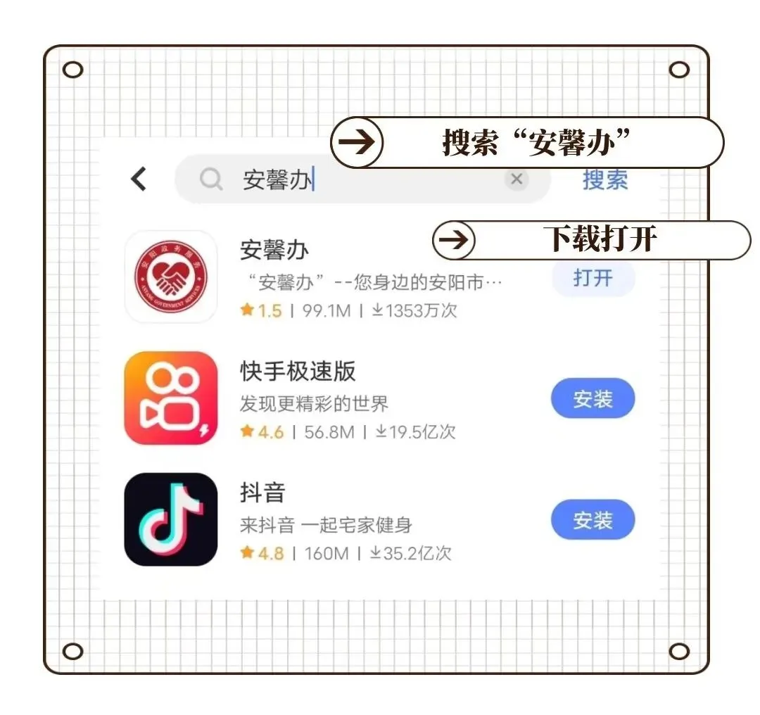①通过手机商店搜索安馨办app,点击下载进入