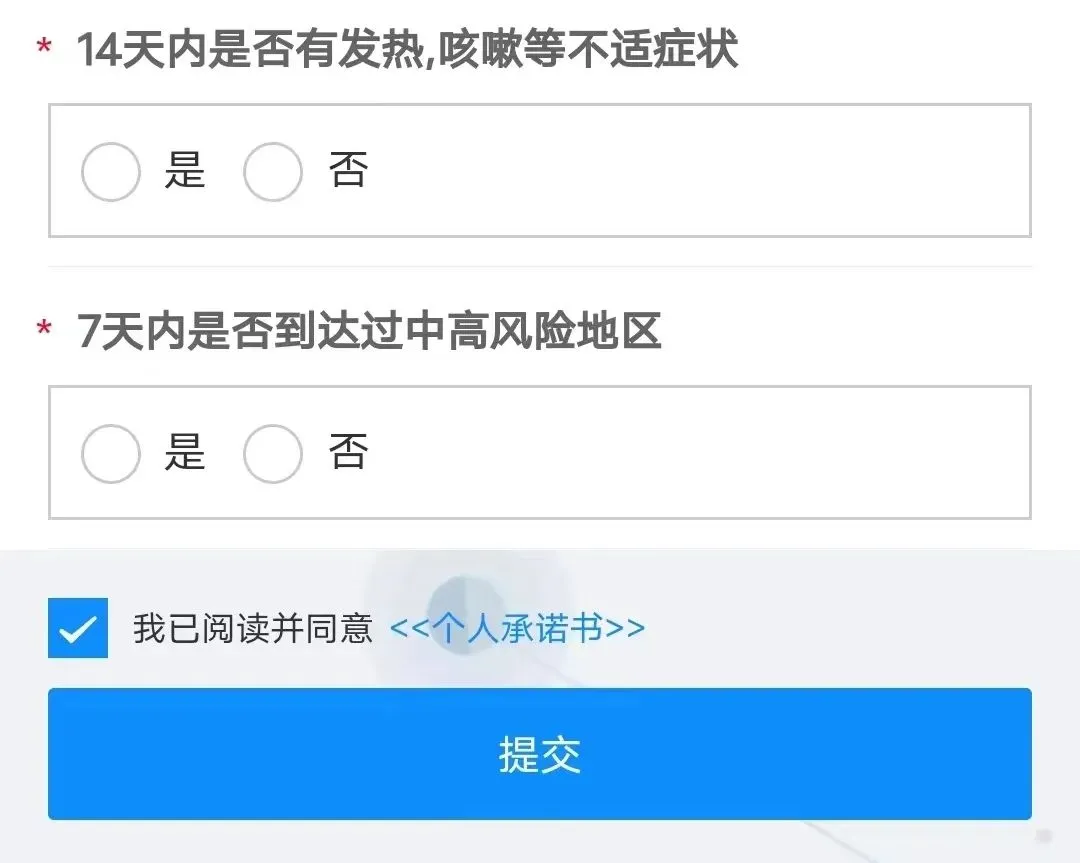⑤进入填报信息页面进行填报登记个人信息,登记完毕后查看《个人承诺书》,然后勾选阅读并同意《个人承诺书》,最后点击提交就可以了。