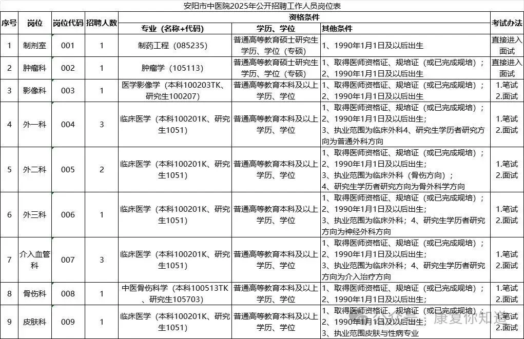 具体招聘单位、招聘人员数量、对象和条件详见《安阳市中医院2025年公开招聘工作人员岗位表》(附件1)。