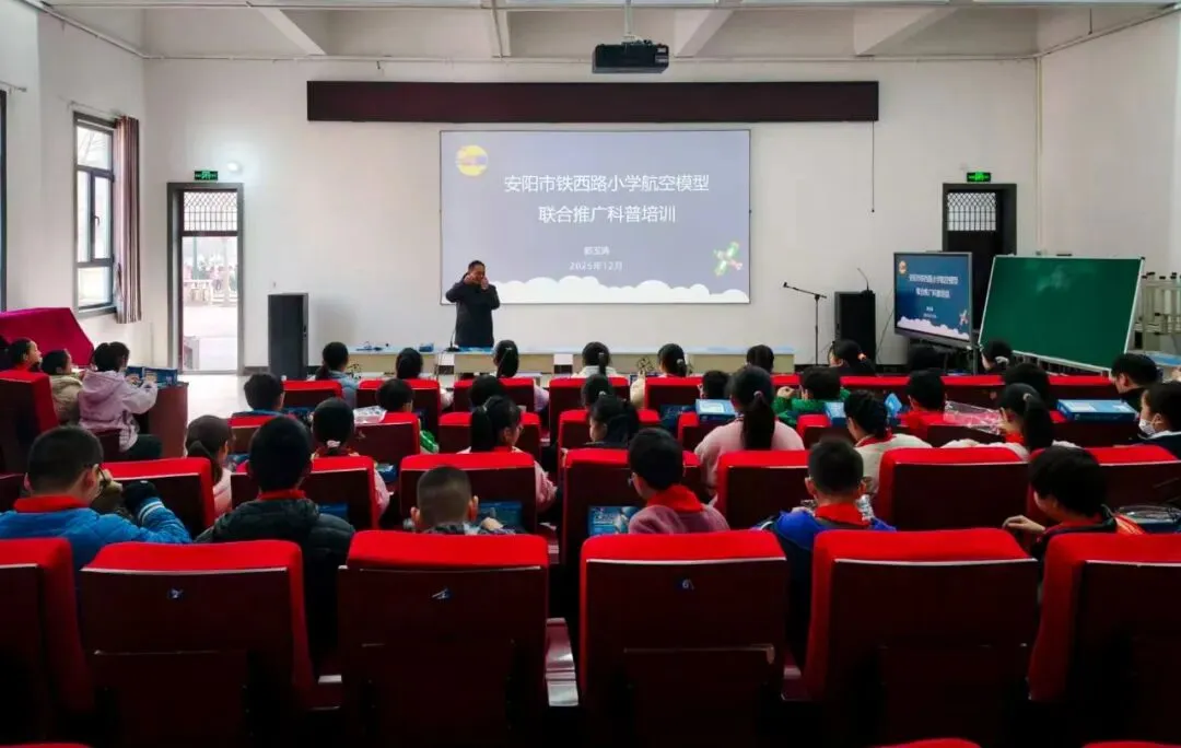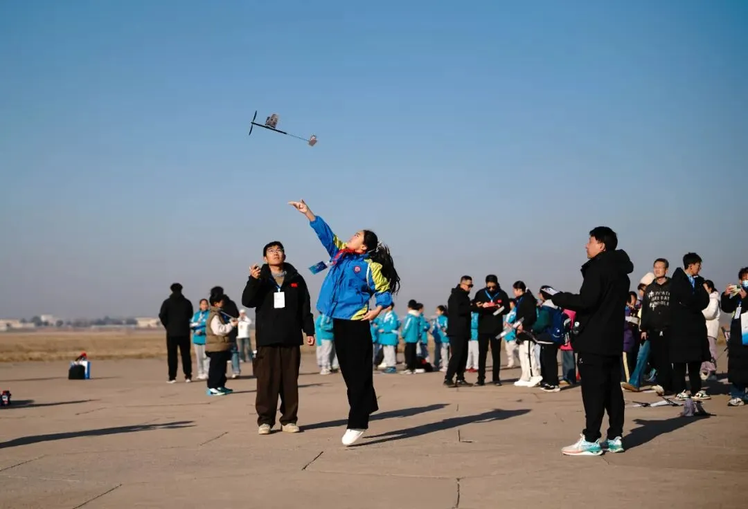 12月初,作为本次联合推广活动的成果检验,"安航杯"2025年少年儿童橡筋动力飞机模型交流赛在安阳航校开赛,来自各联合推广学校的近300名优秀选手齐聚赛场,上演了一场精彩的"蓝天对决" 。