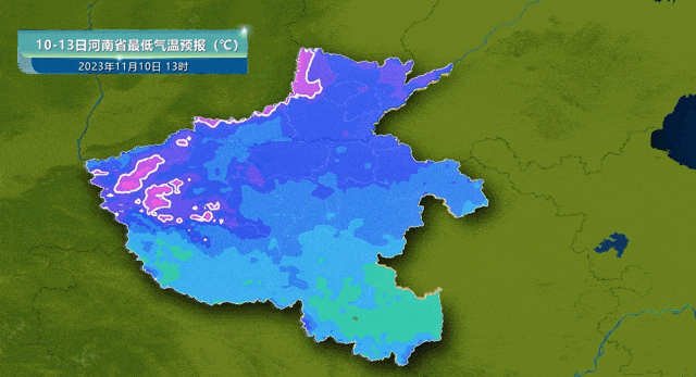 11月12日和11月13日早晨最低气温,北部、西部-3℃到-1℃,高海拔山区-5℃到-3℃;南部5℃到7℃;其他县市0℃到2℃。