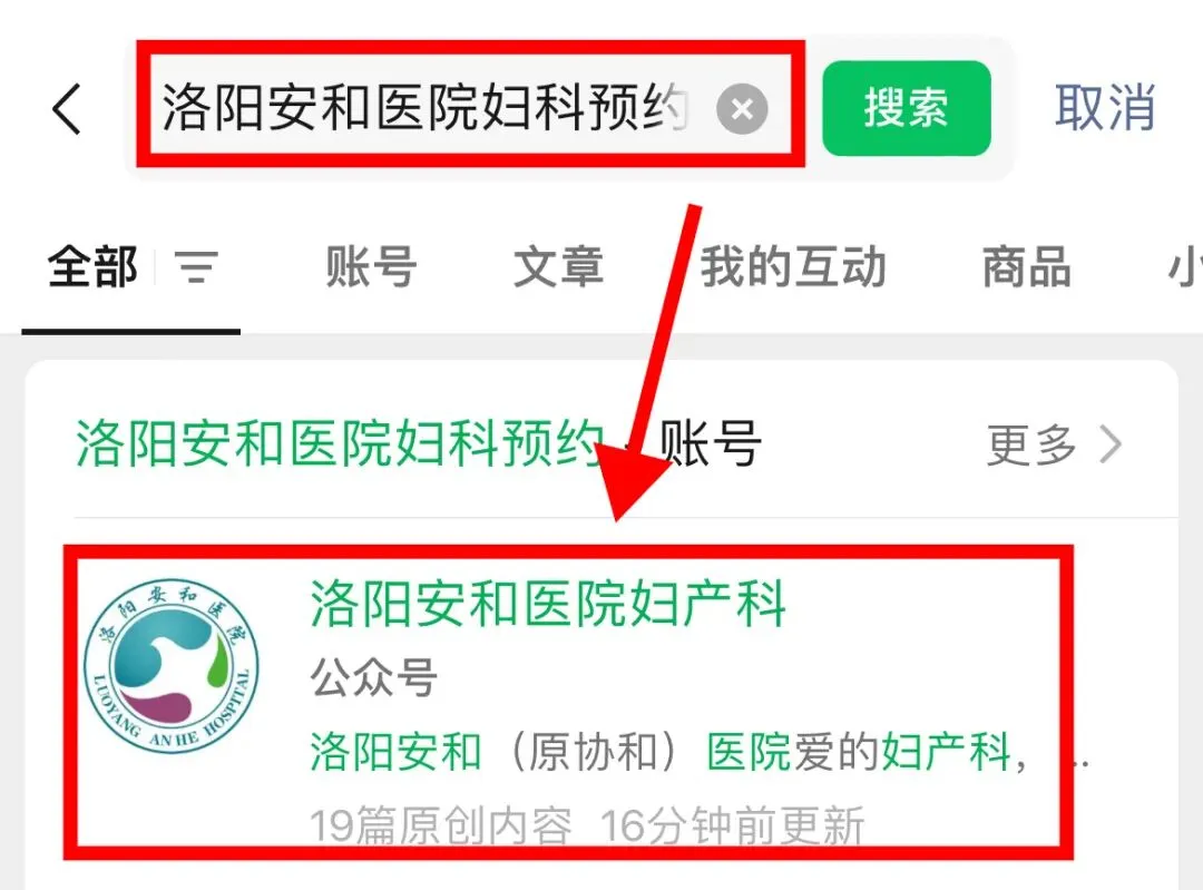 点击下方名片或直接在微信搜索“洛阳安和医院妇科预约”。