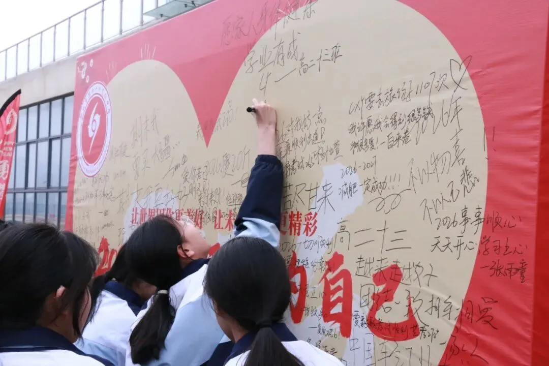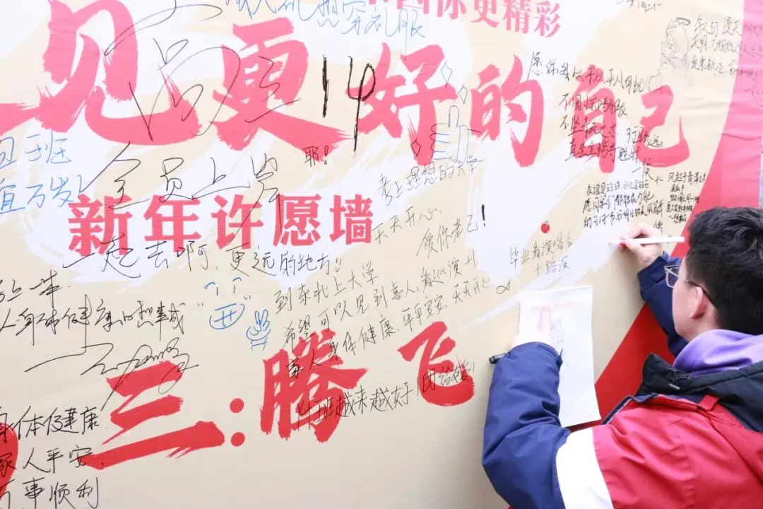活动现场,氛围温馨而热烈。主题展板前,同学们或独自沉思,或三五成群轻声讨论,郑重地将彩色心愿贴精心书写、细心粘贴。“决胜六月,金榜题名”“愿每一次努力都有回响”“成为更独立、更温暖的自己”“带父母去旅行”……字里行间,既有冲刺学业的铮铮誓言,也有对至亲的柔软牵挂;既有对个人成长的深刻期许,亦不乏“愿世界和平”、“强国有我”的广阔胸怀。片片方笺,如五彩翎羽,很快汇聚成一只意欲翱翔的梦想之翼,在冬日的校园里熠熠生辉。