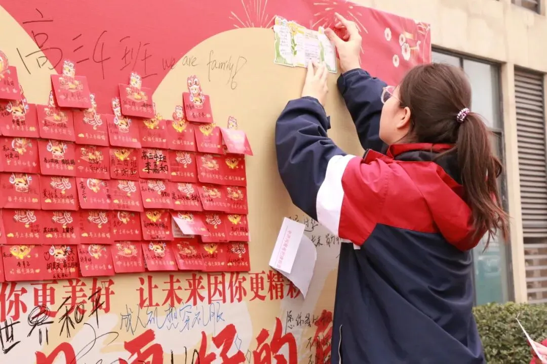高三学子冯钰轩在贴下自己的心愿后表示:“这不仅是一个仪式,更是一次与自己的对话。把目标可视化,让它每天‘注视’着我,前进的动力似乎更加具体了。”老师们也纷纷加入,写下殷切鼓励:“愿你以梦为马,步履不停”、“去闯荡,去热爱,青春自有答案”。师生间的思想在墙上交汇融合,构成了校园里最动人的风景。