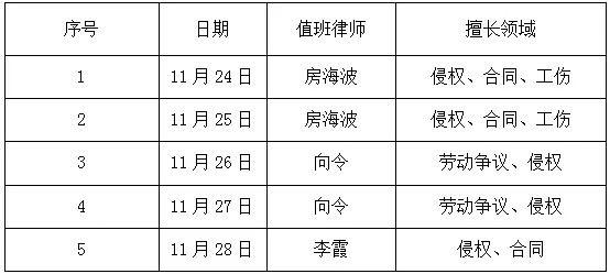 7、本周职工服务中心律师值班表:
