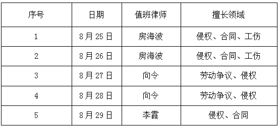 10、本周职工服务中心律师值班表: