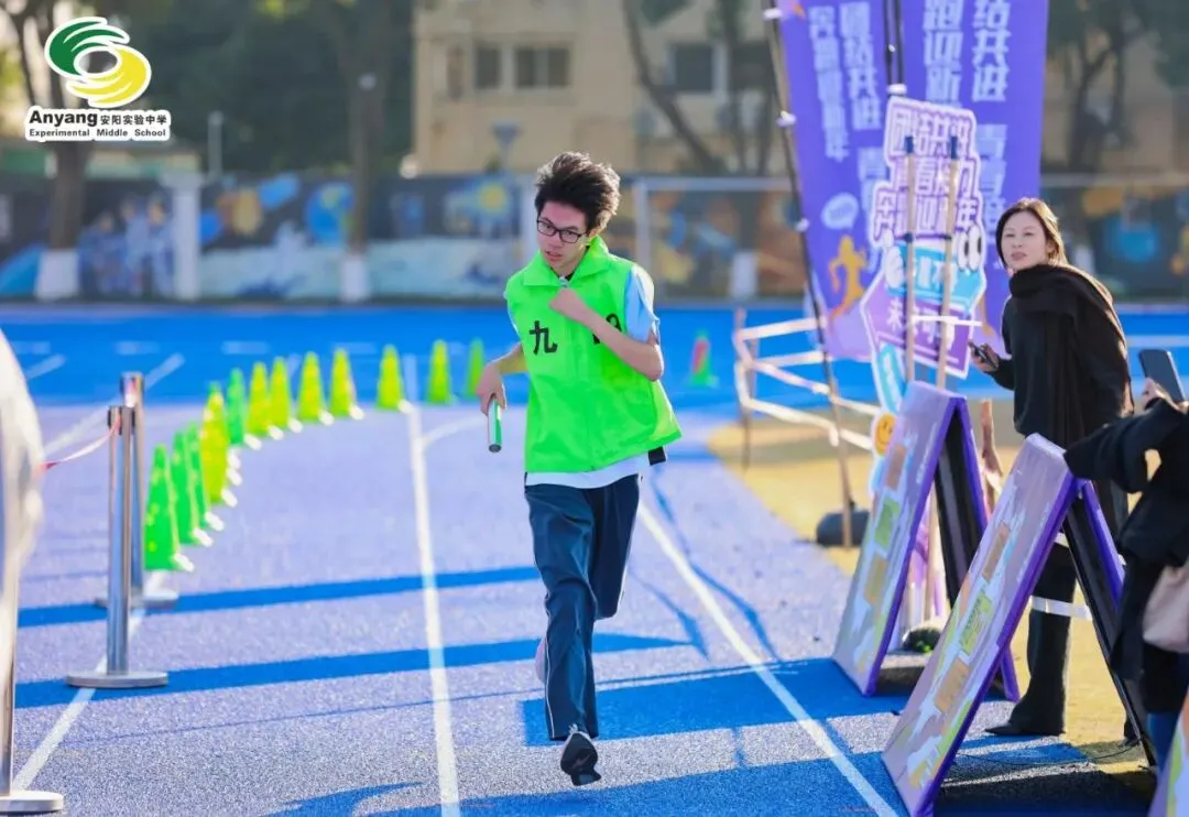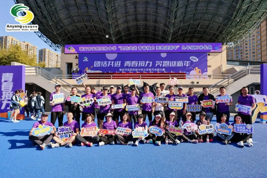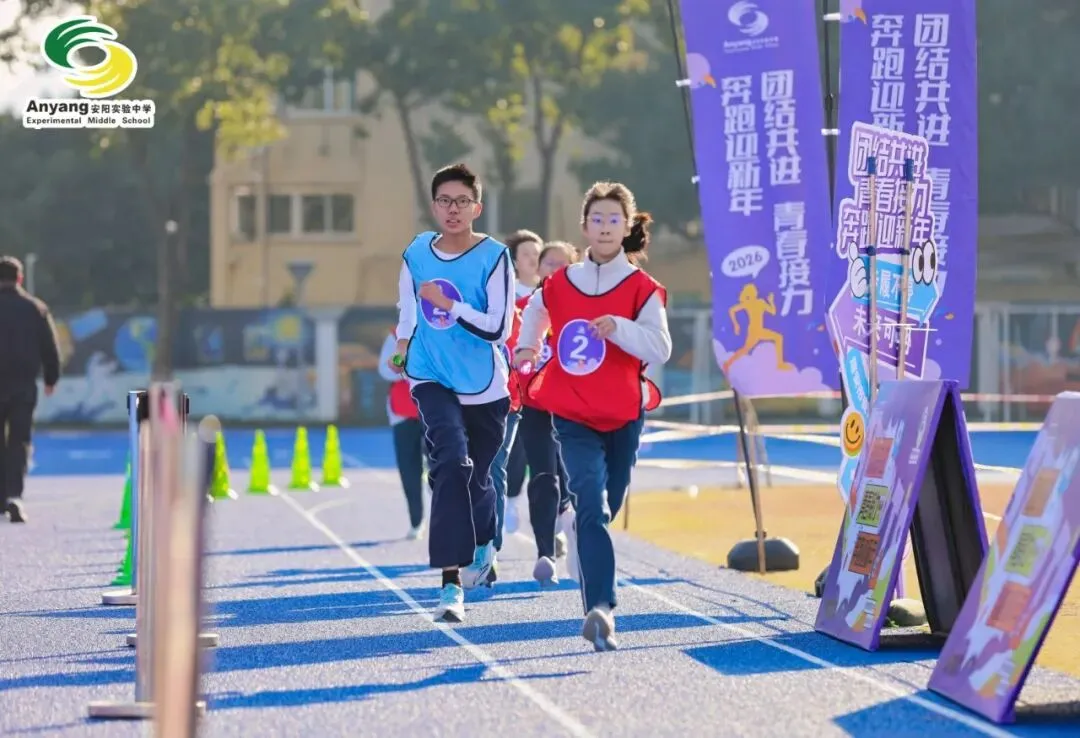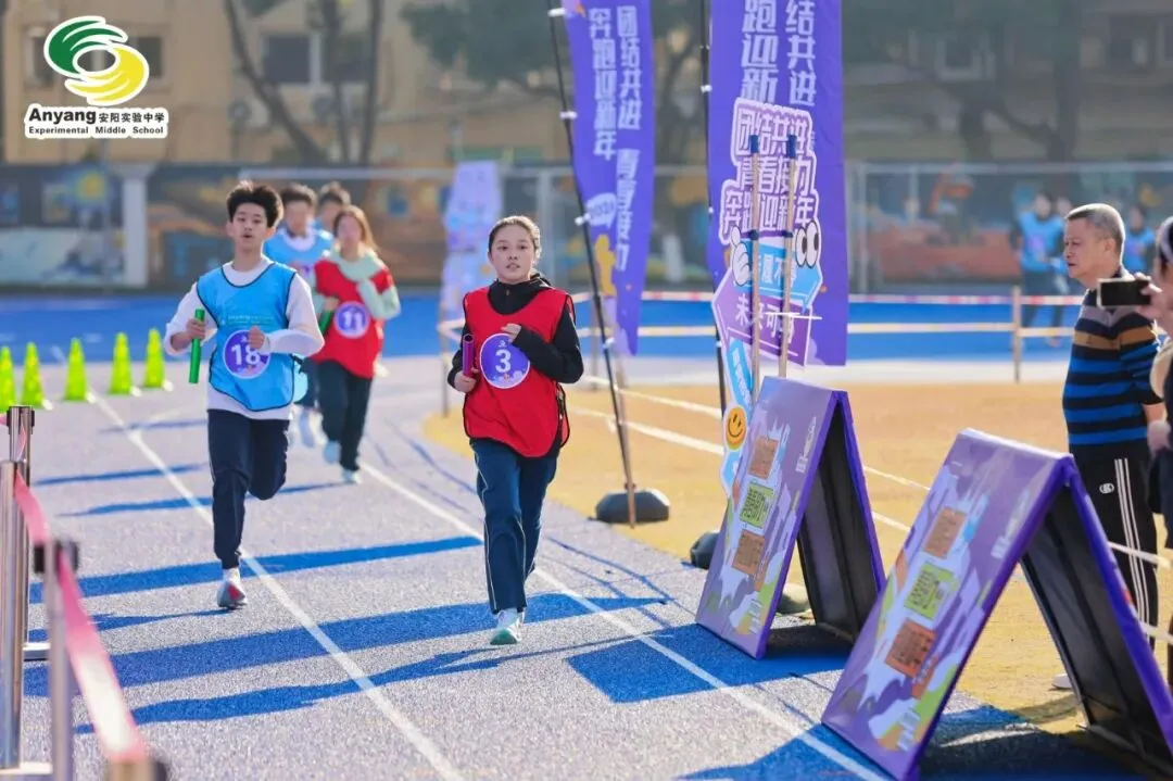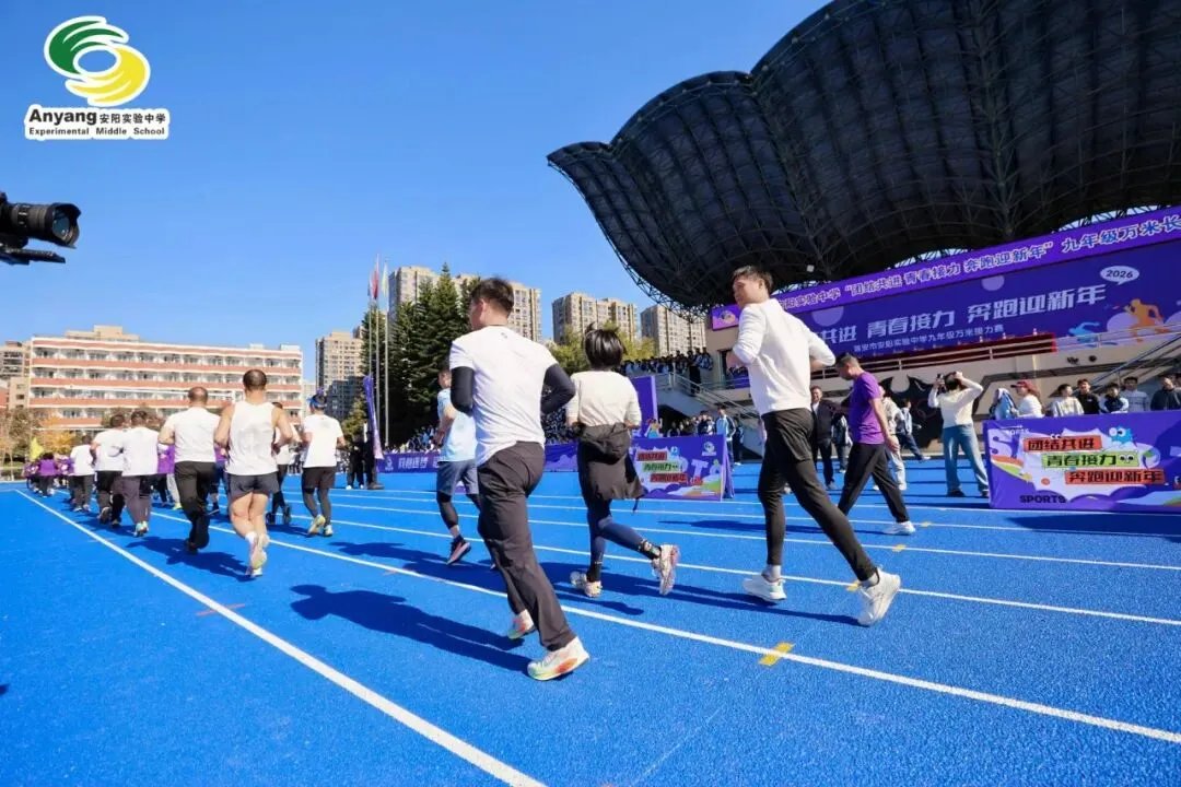 元旦前夕,安阳实验中学万米接力赛鸣枪开赛。九年级全体师生齐聚操场,以奔跑告别旧岁,用接力迎接新年。