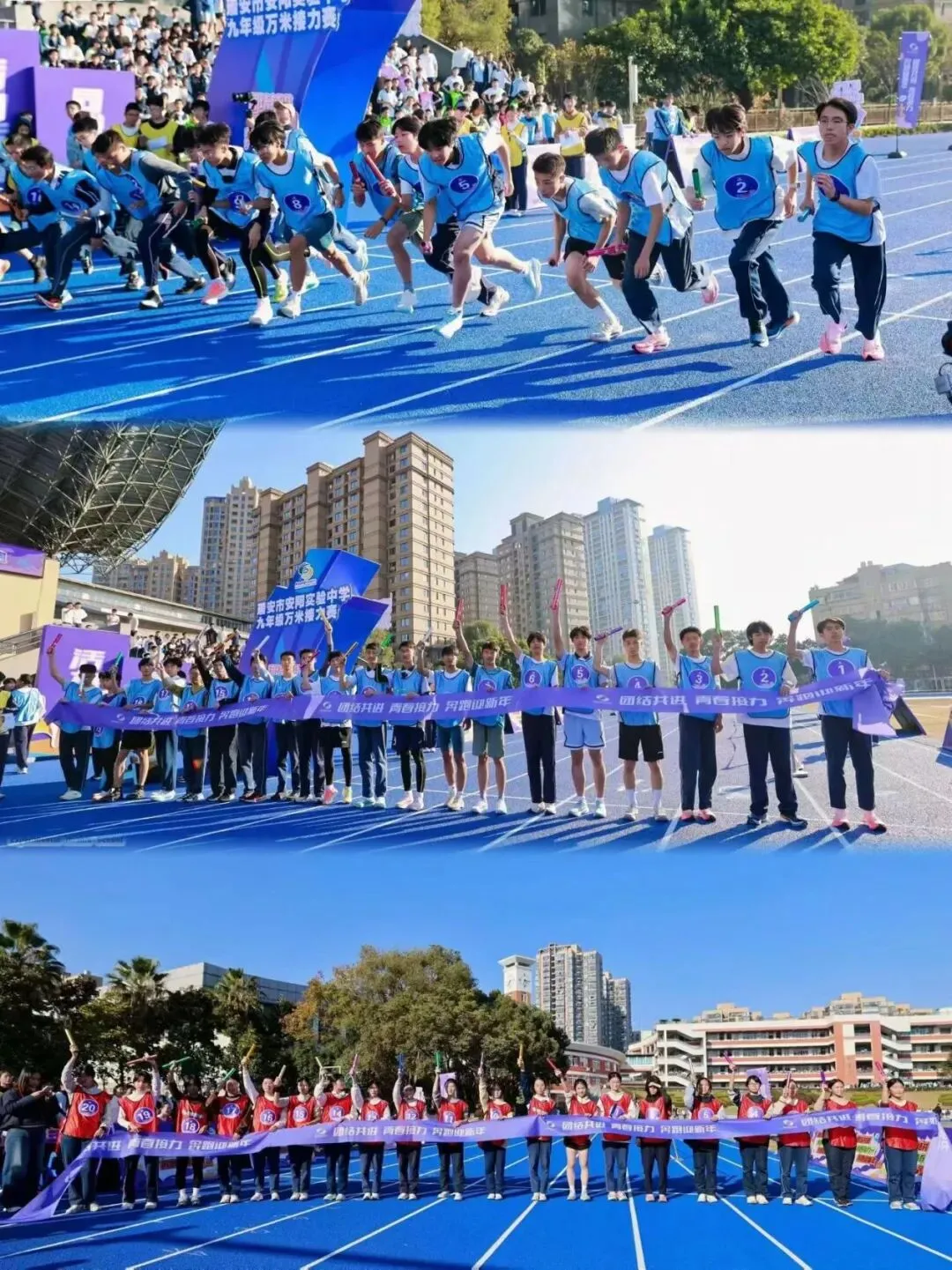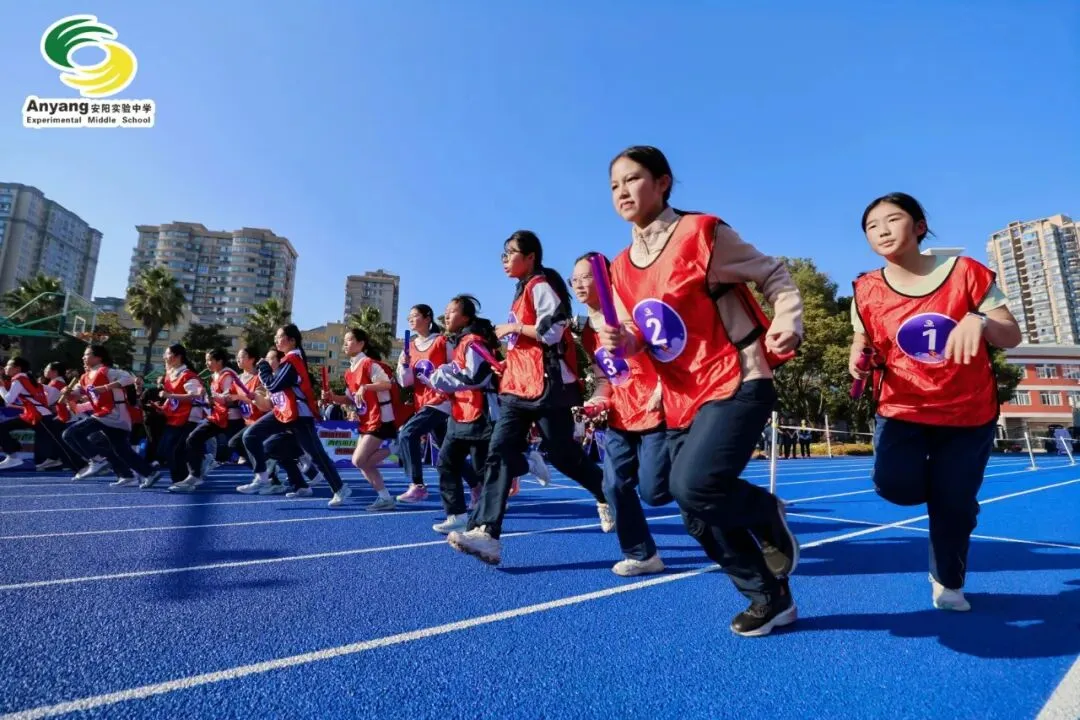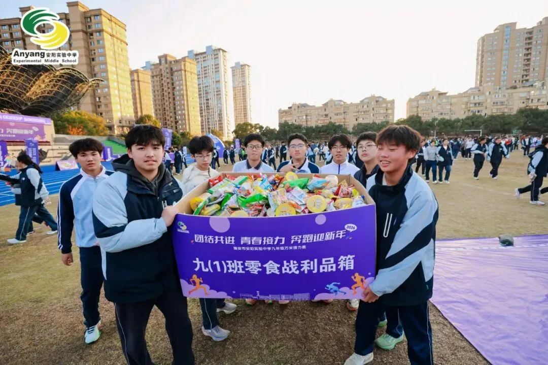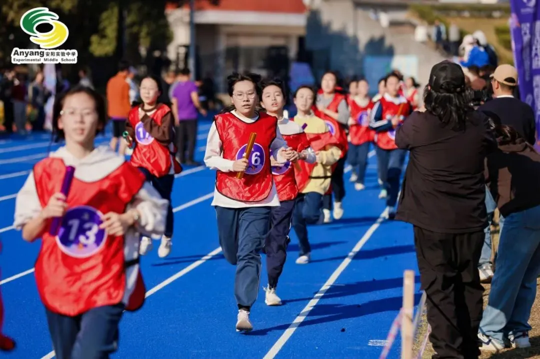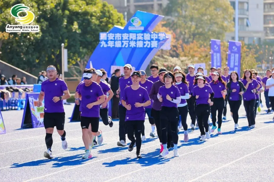 元旦前夕,安阳实验中学万米接力赛鸣枪开赛。九年级全体师生齐聚操场,以奔跑告别旧岁,用接力迎接新年。