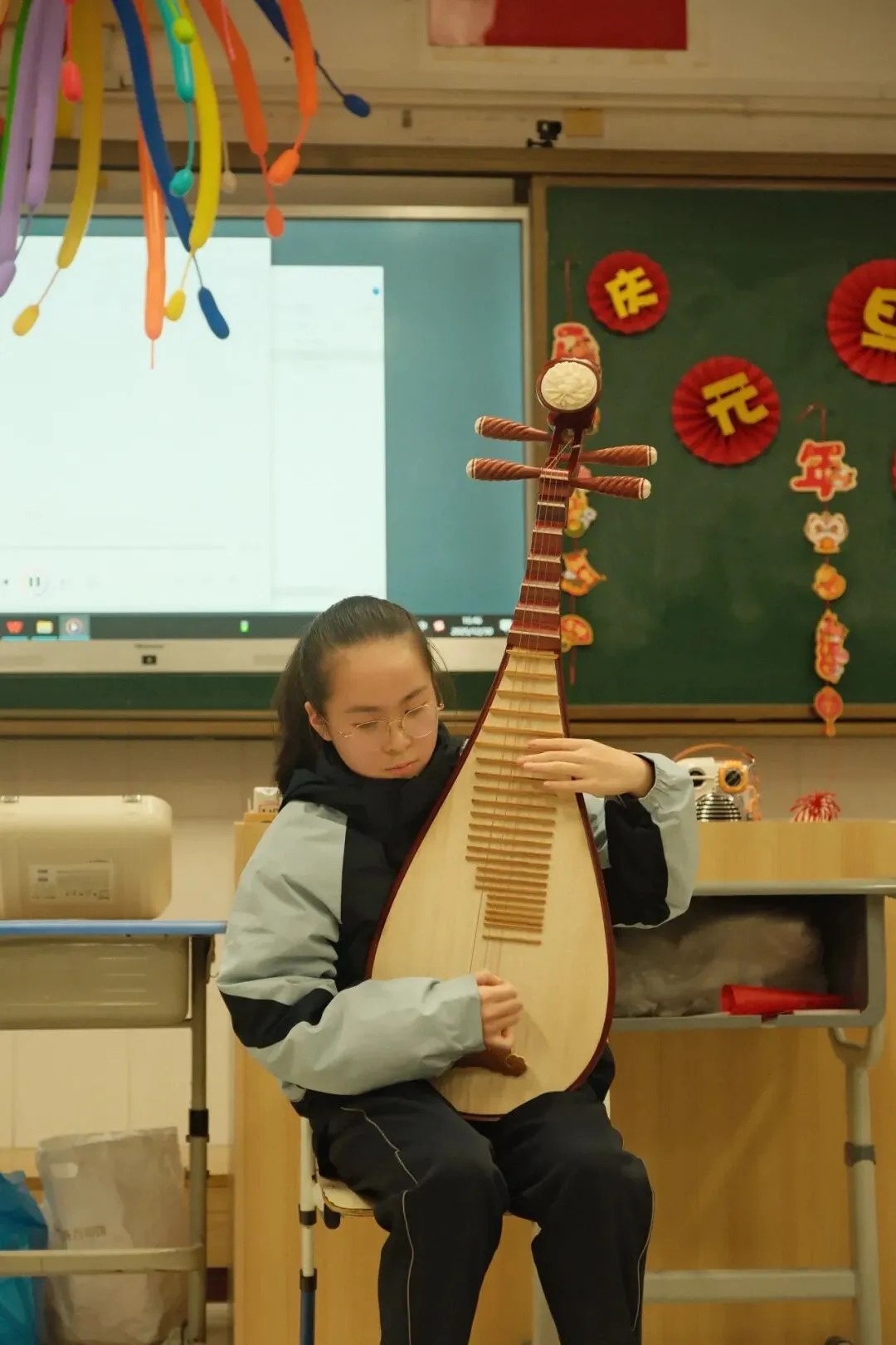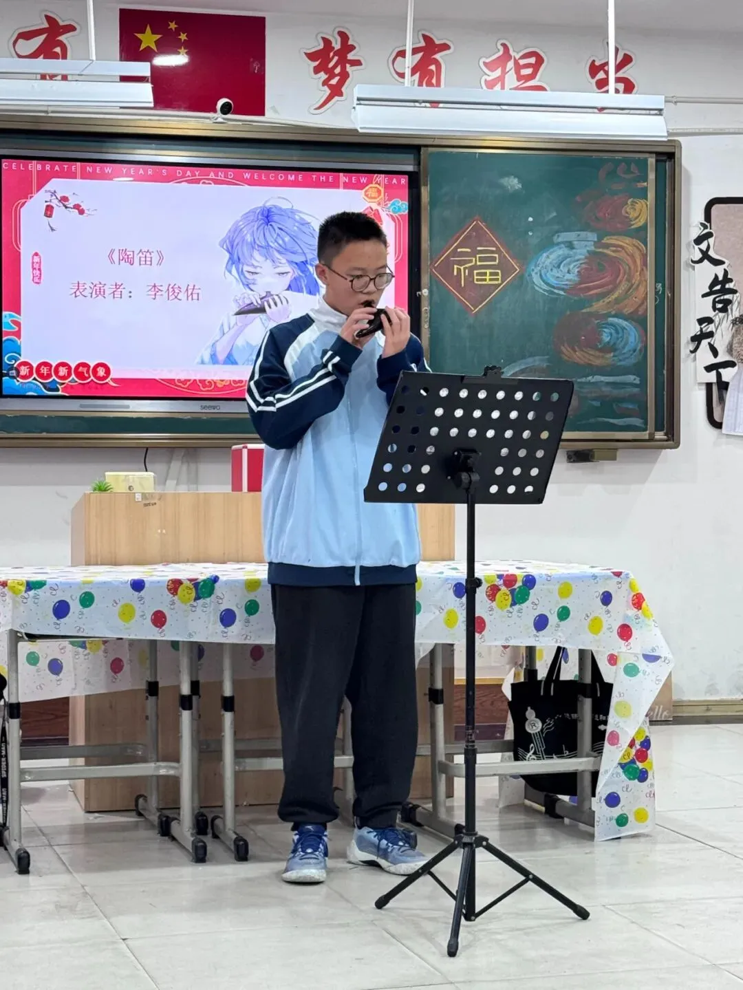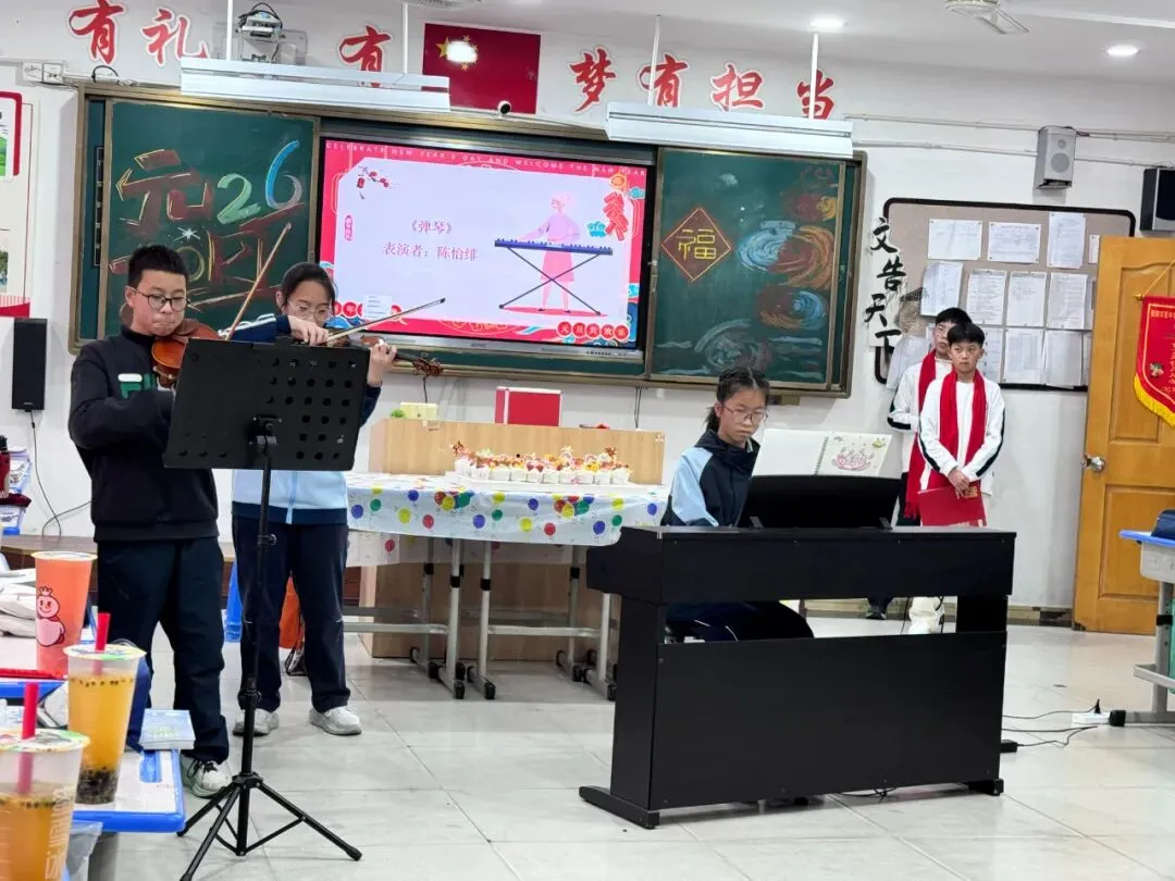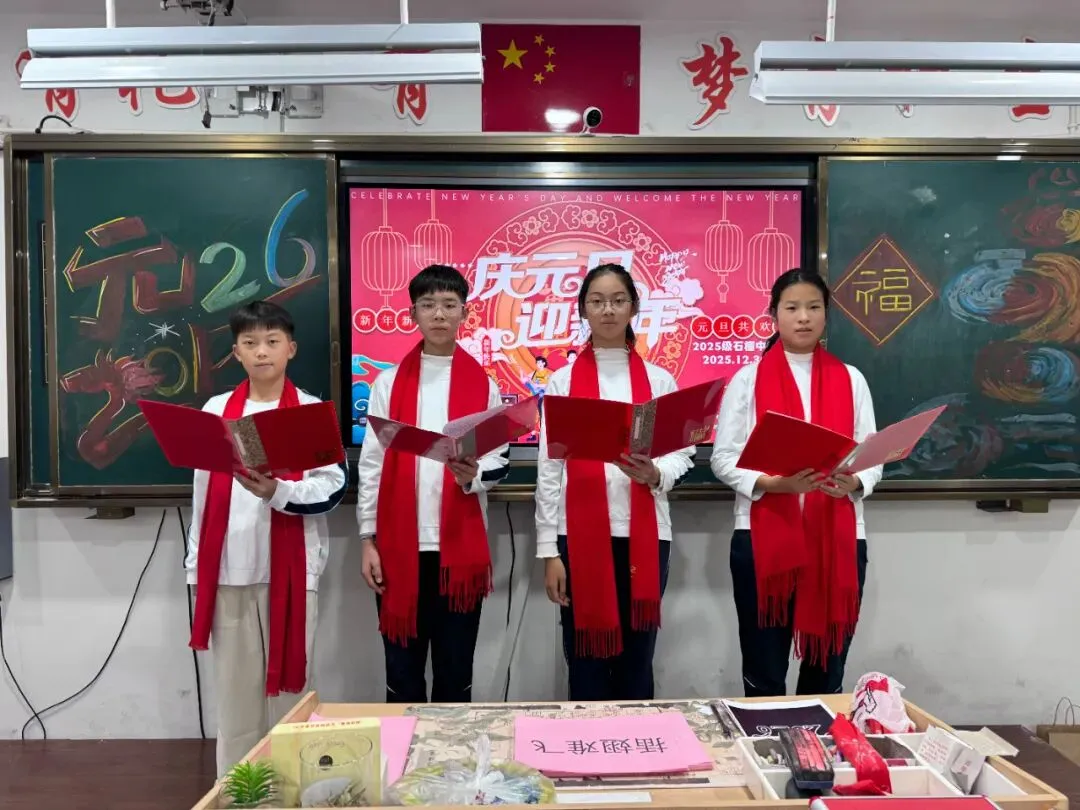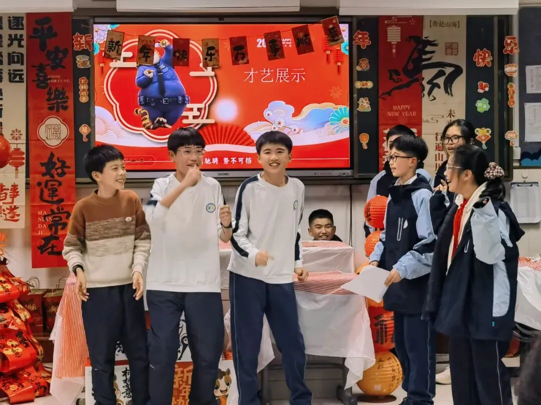 七八年级以举行主题班会的形式迎接新年的到来。