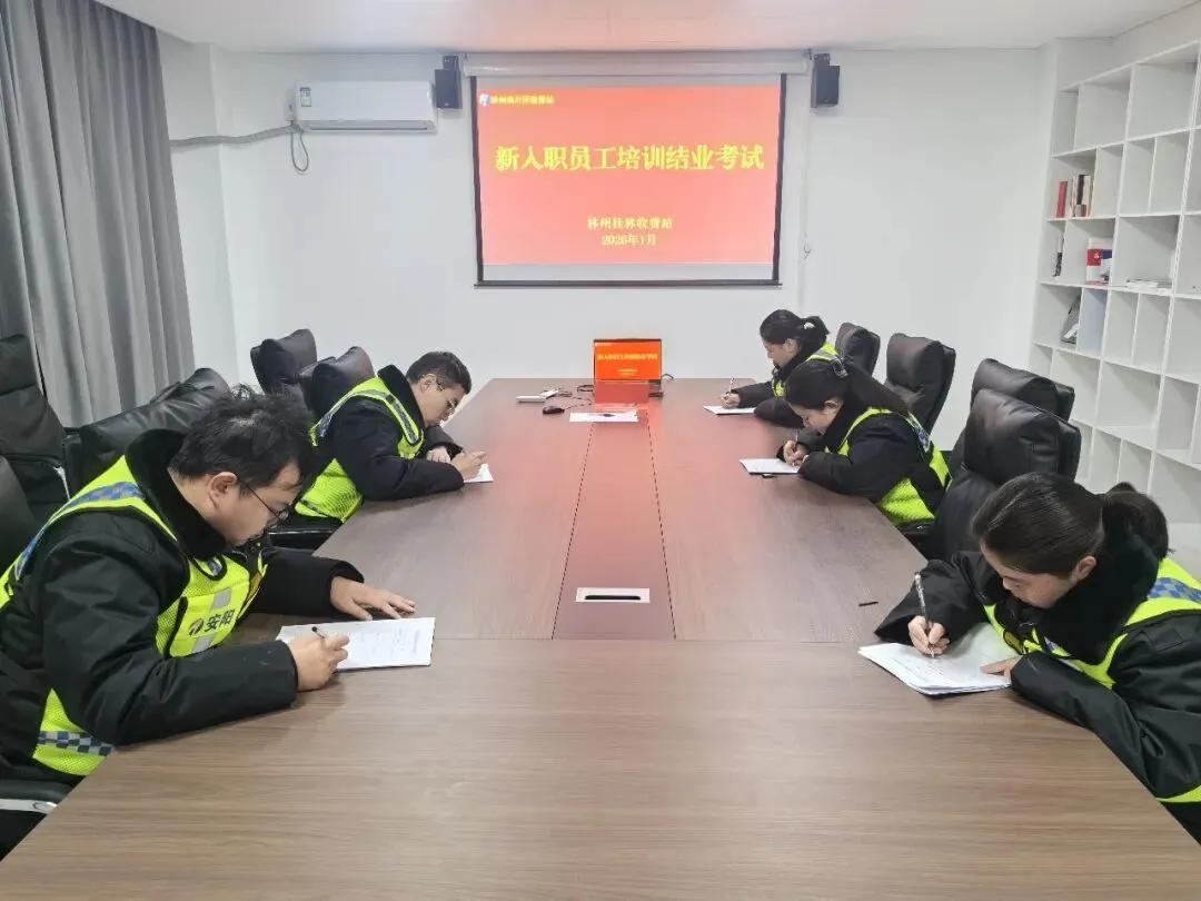 此次培训为期5天,课程内容涵盖收费政策法规、收费业务操作、服务礼仪、安全生产、廉洁教育、特情处置实操及站级设备维护等模块,全方位锤炼员工工作作风、夯实业务理论基础。培训期间科学统筹学习进度与学员心理状态,采取“上午线上集中授课、下午军事化训练+实操演练、晚上复盘总结”的全时段培养模式,切实增强新入职人员的归属感与获得感。1月4日下午结业测试如期举行,所有员工成绩合格,为本次培训画上了圆满句号。