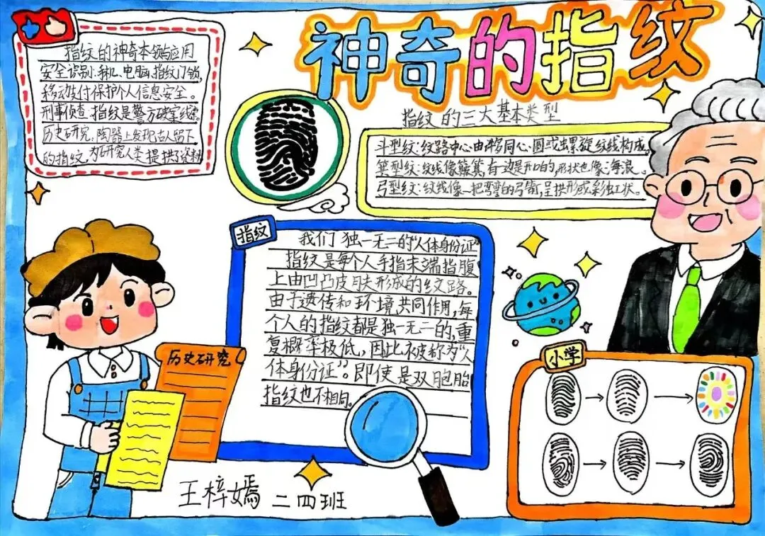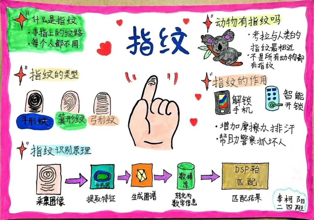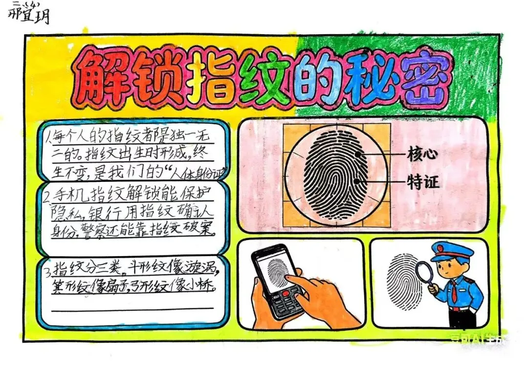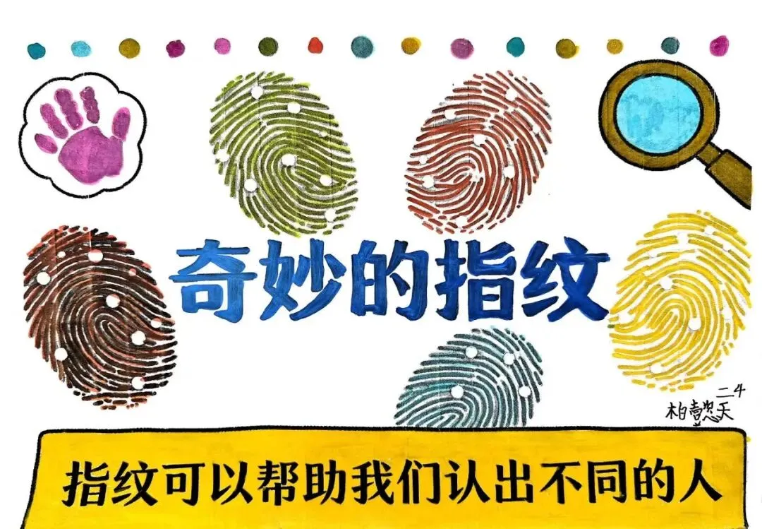 孩子们还了解到指纹在日常生活中的诸多用途:打卡上班时,爸爸妈妈按一下指纹就能解锁考勤机;手机解锁、支付付款时,指纹轻轻一碰就安全又快捷;警察叔叔还能通过现场留下的指纹找到坏人,帮我们维护安全;甚至有些精密仪器的操作,也需要指纹来确认身份,防止误操作。这些贴近生活的知识,让孩子们瞬间觉得指纹“超有用”!