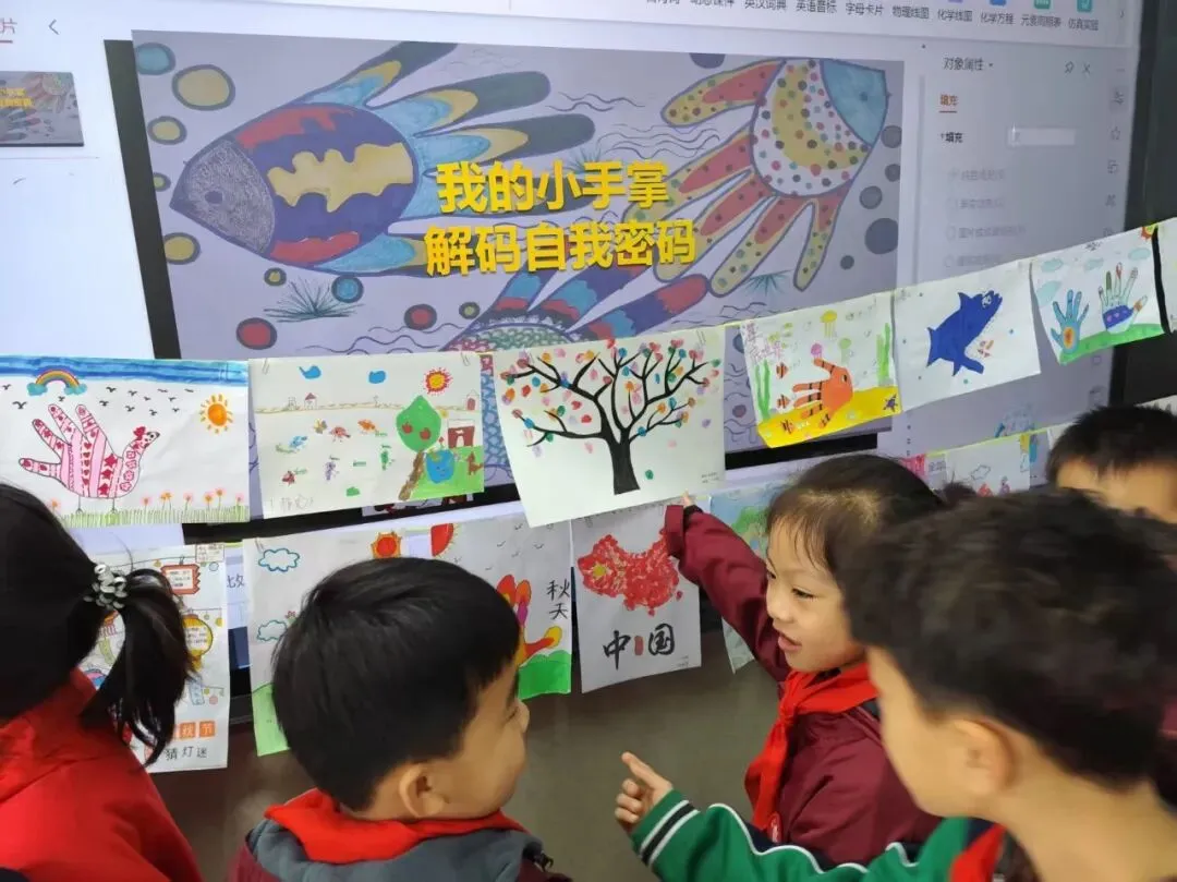 探索不能只停留在“看”,更要动手实践!孩子们手持放大镜仔细端详,再用拓印工具小心翼翼提取掌纹和指纹,一笔一划记录纹路模样:掌纹纵横交错、独一无二;指纹形态各异,有的像旋转小漩涡,有的像流淌小溪。大家围坐对比拓印作品,认真分类整理,最终确认“每个人的掌纹、指纹都是独一无二的”,解开“指纹能破案”的疑惑——原来,掌纹和指纹是我们专属的“生命身份证”!